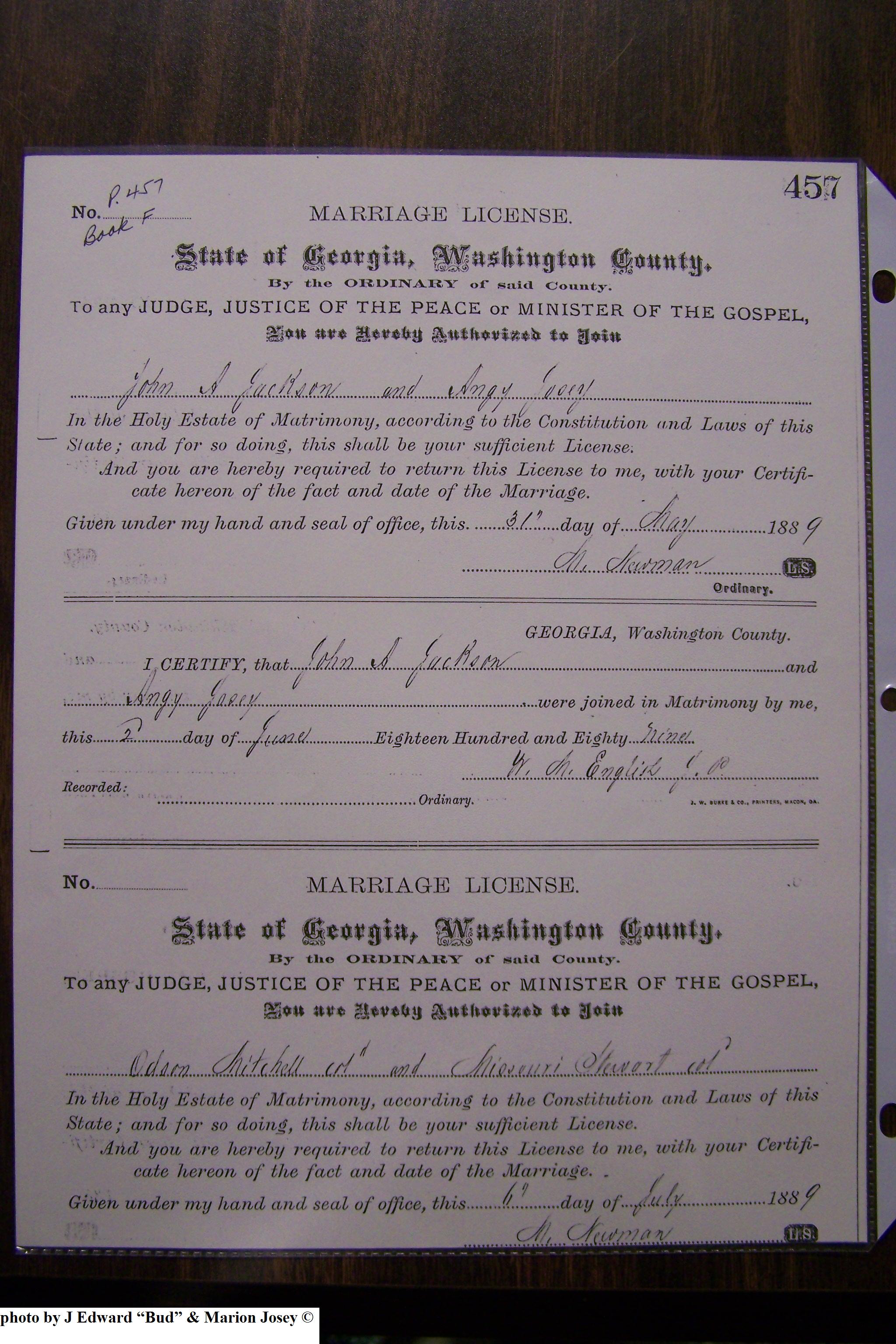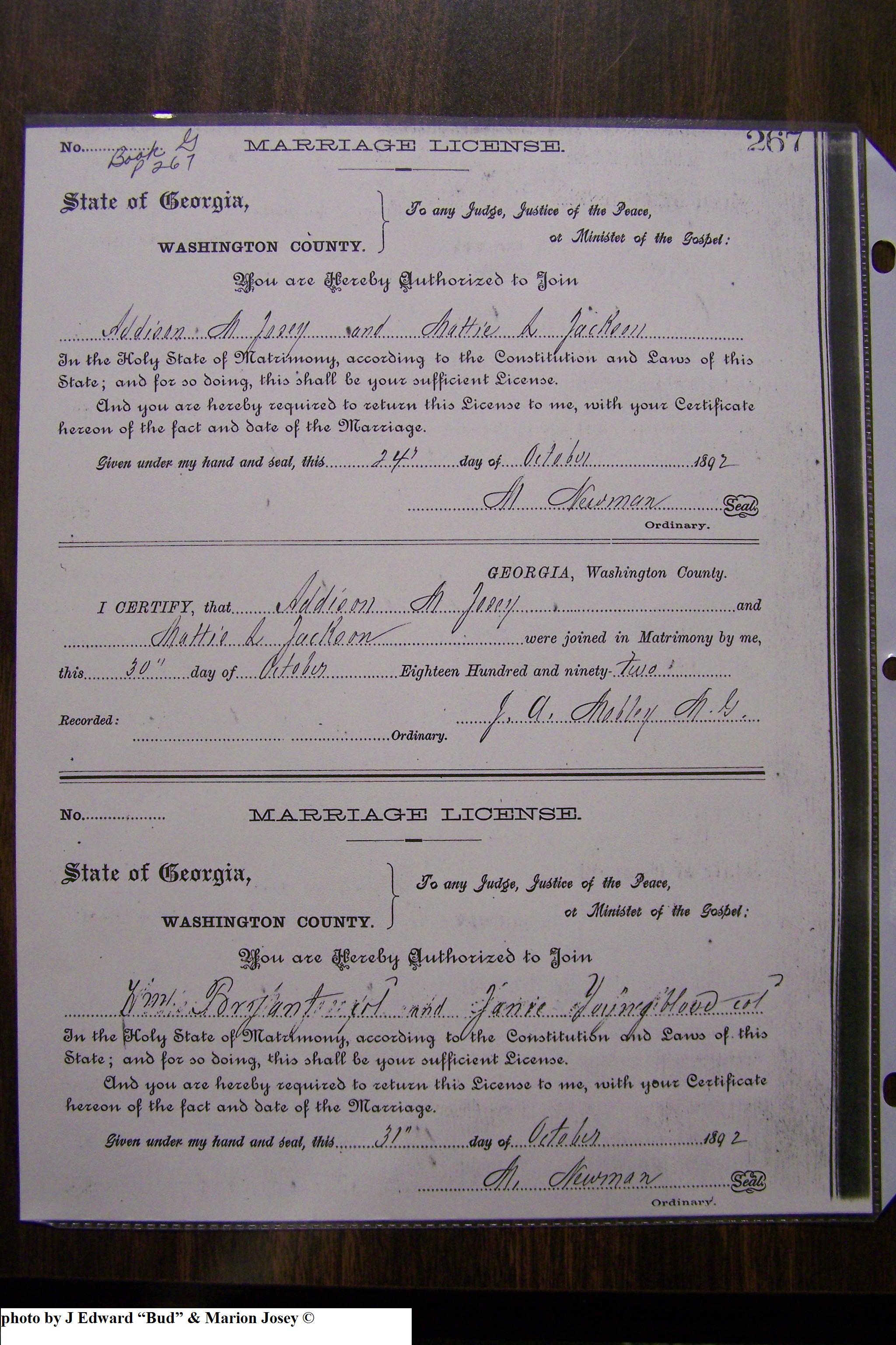 Josey, Addison Marion & Mattie Louise Jackson, Marriage Lic 139.JPG