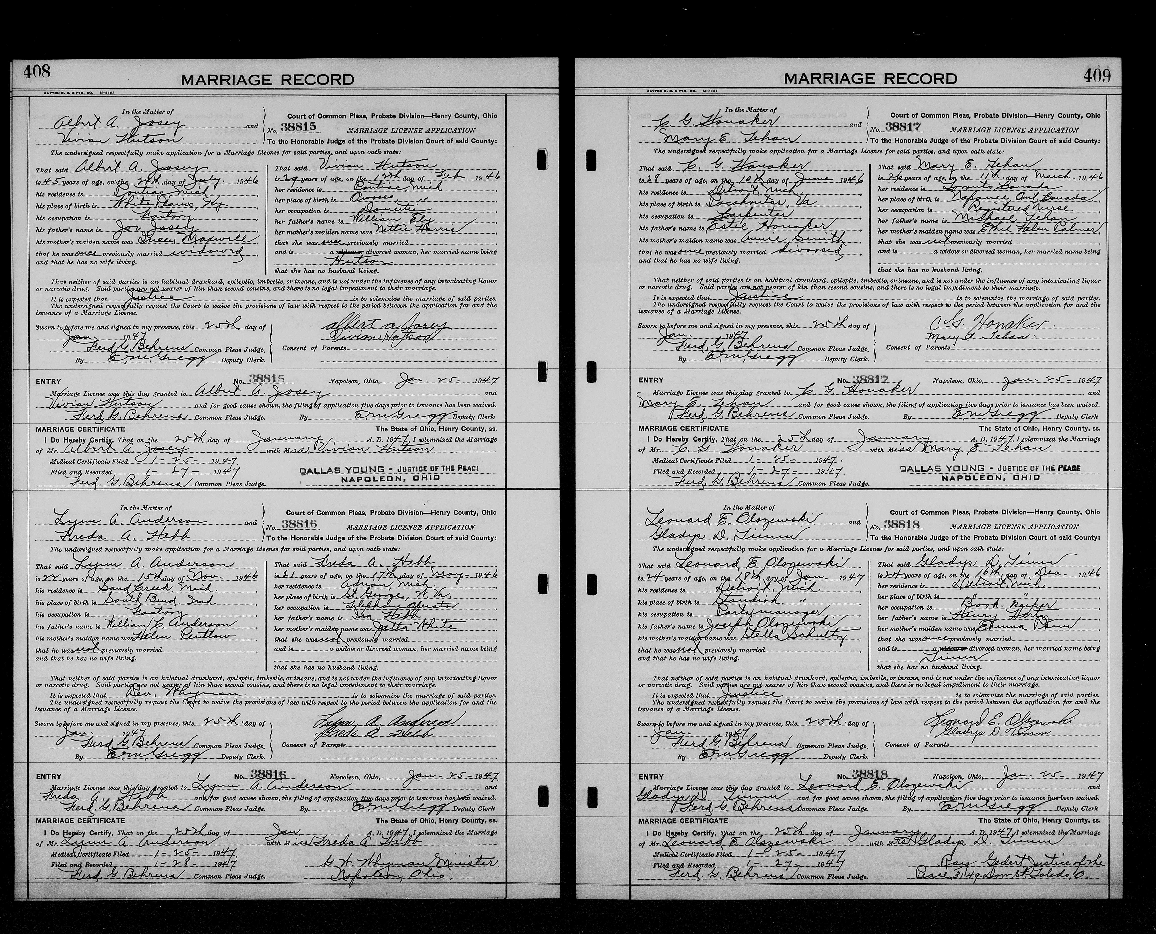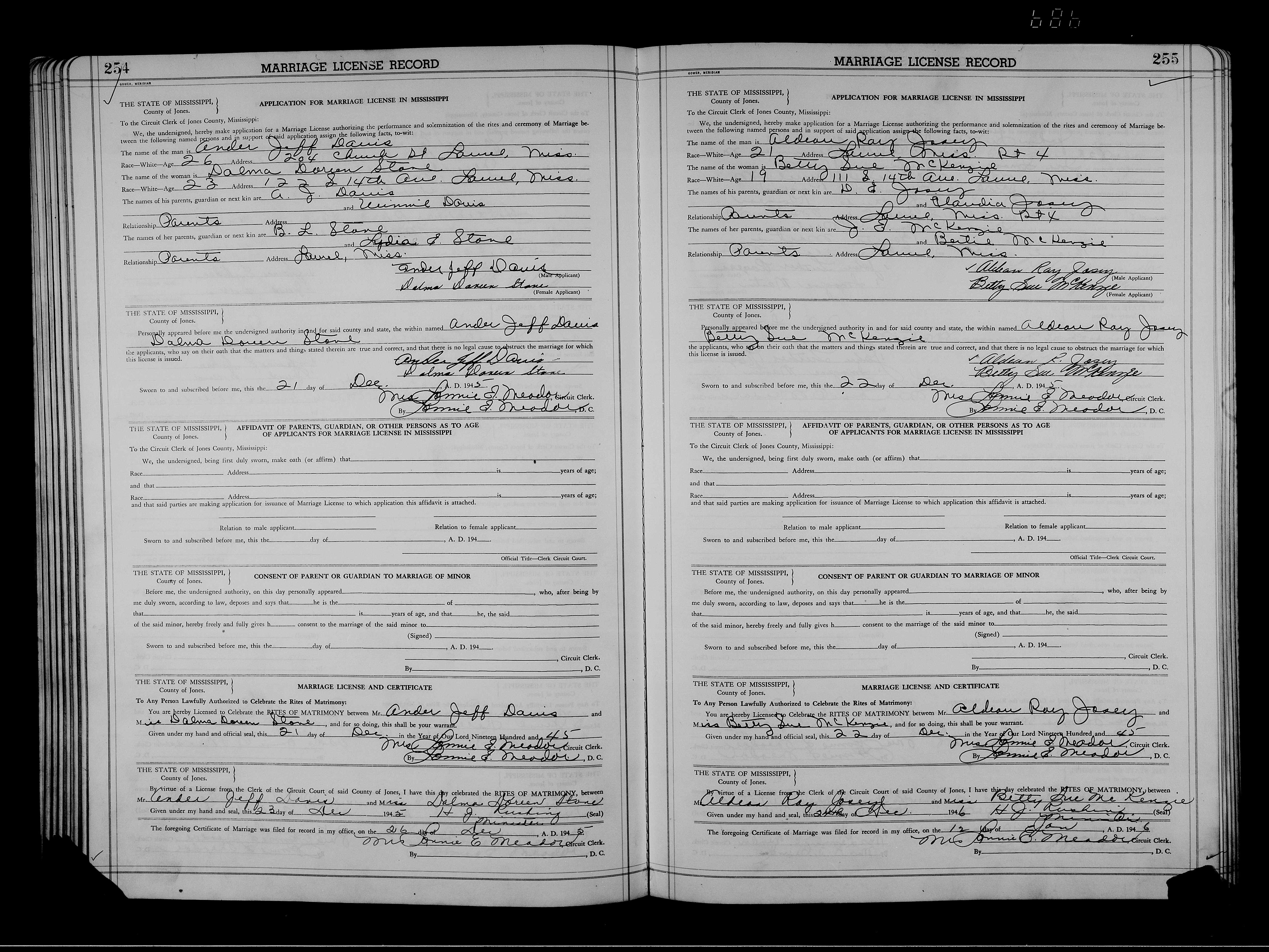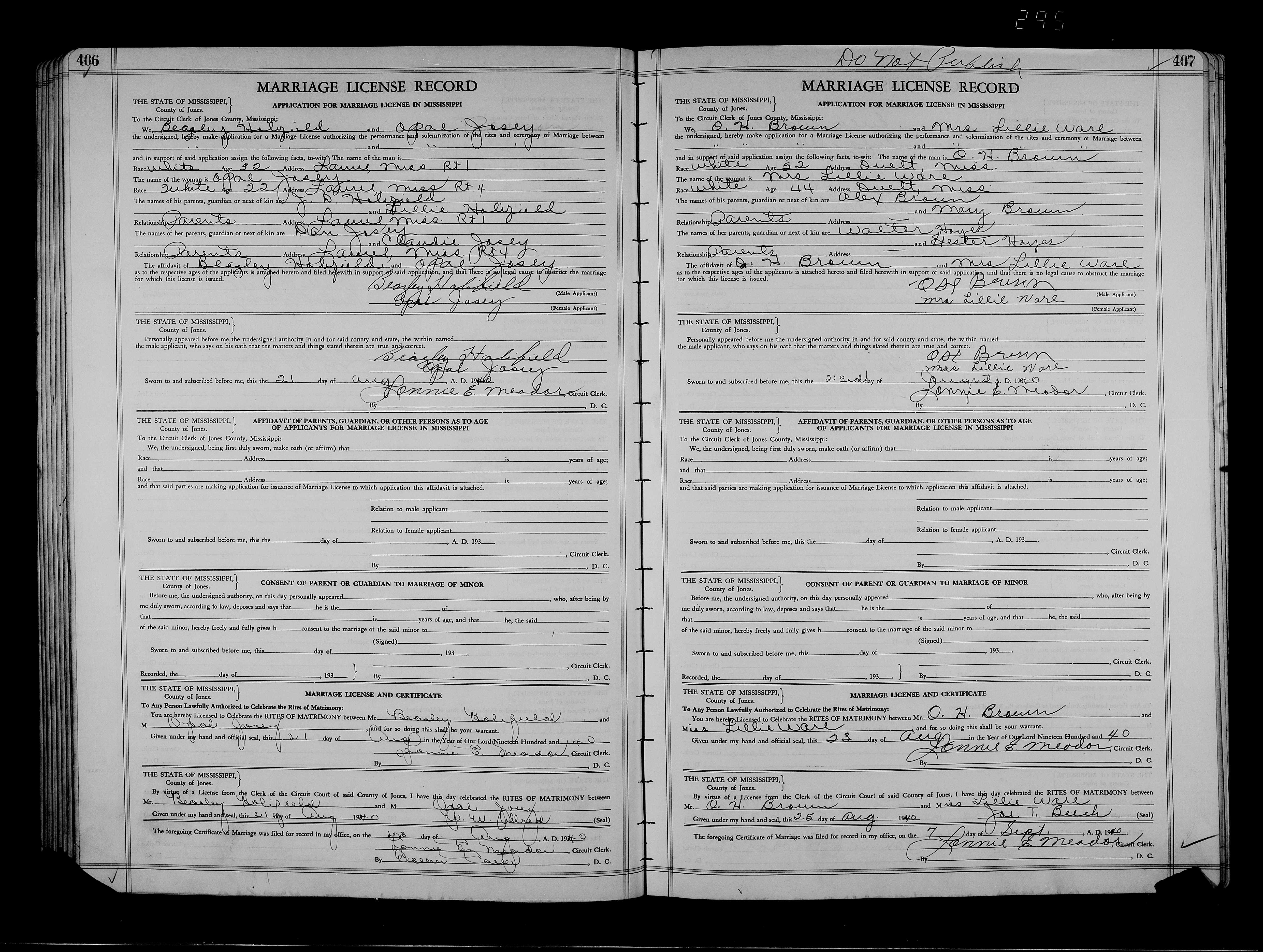 Josey, Ronnie Ollis & Violet Mae Price, Marriage Lic 083.JPG