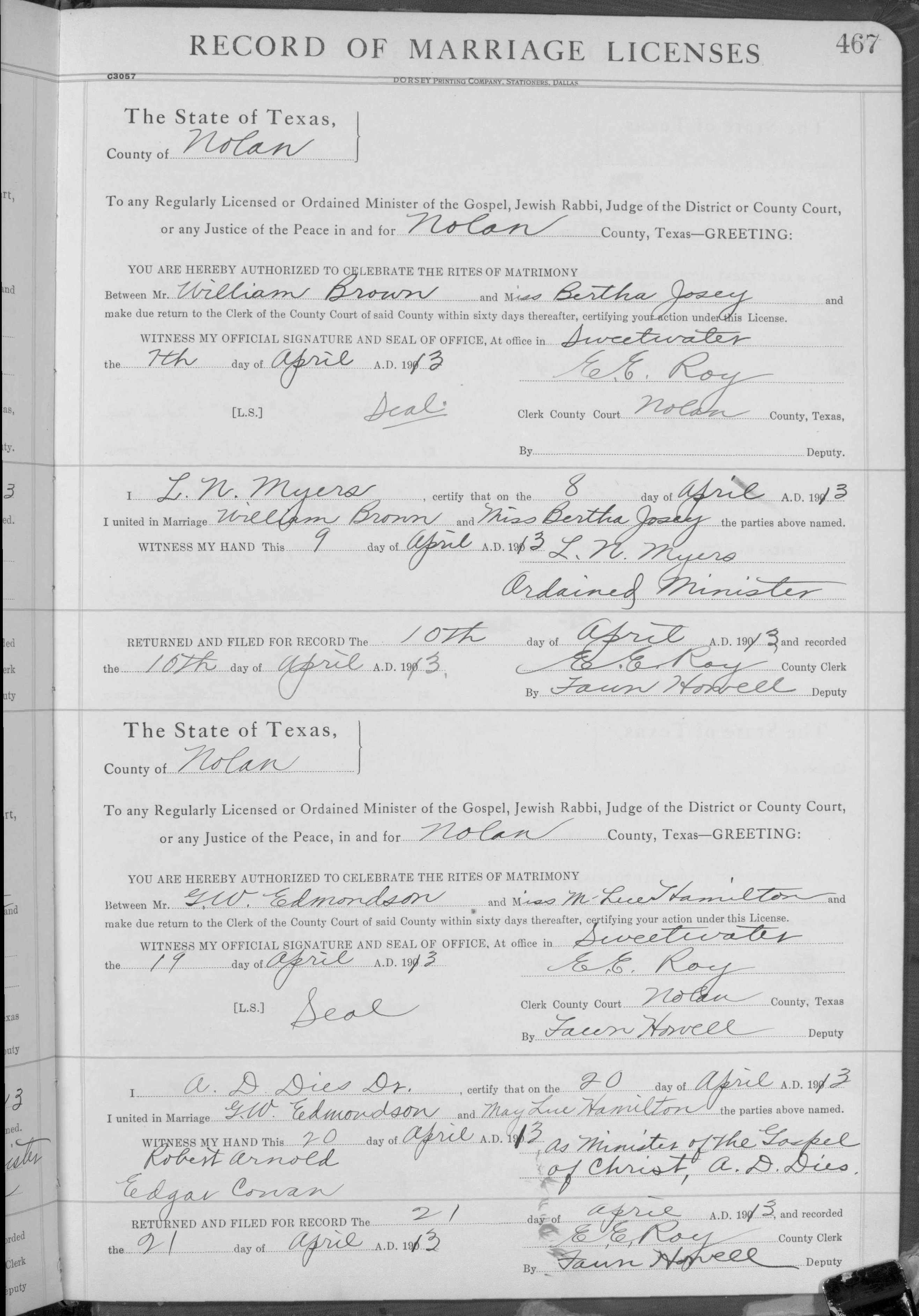 Josey, Windom E & Barbara J Howell, Marriage Lic 045.JPG