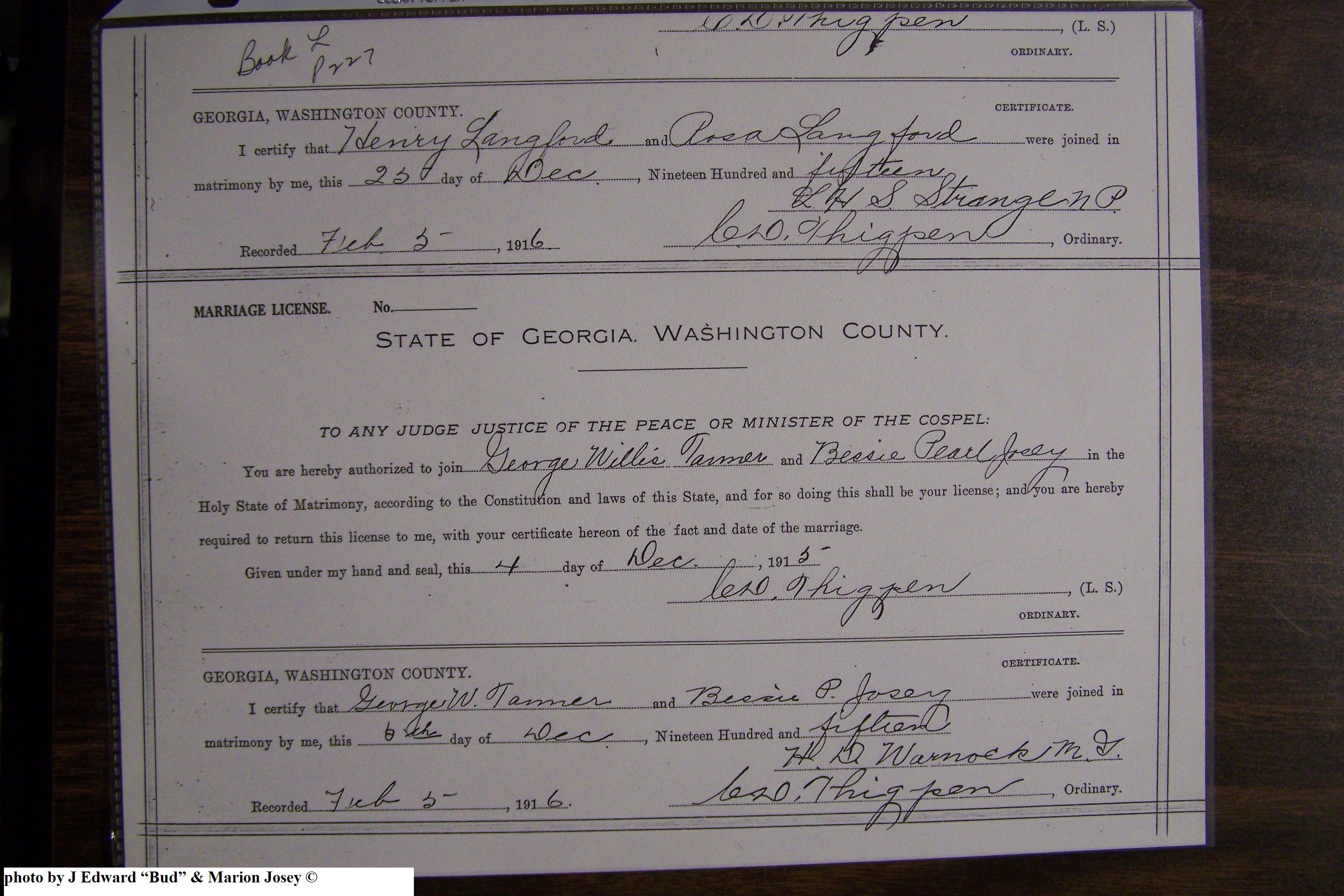 Josey, Bessie Pearl & George Willis Tanner, Marriage Lic 154.JPG