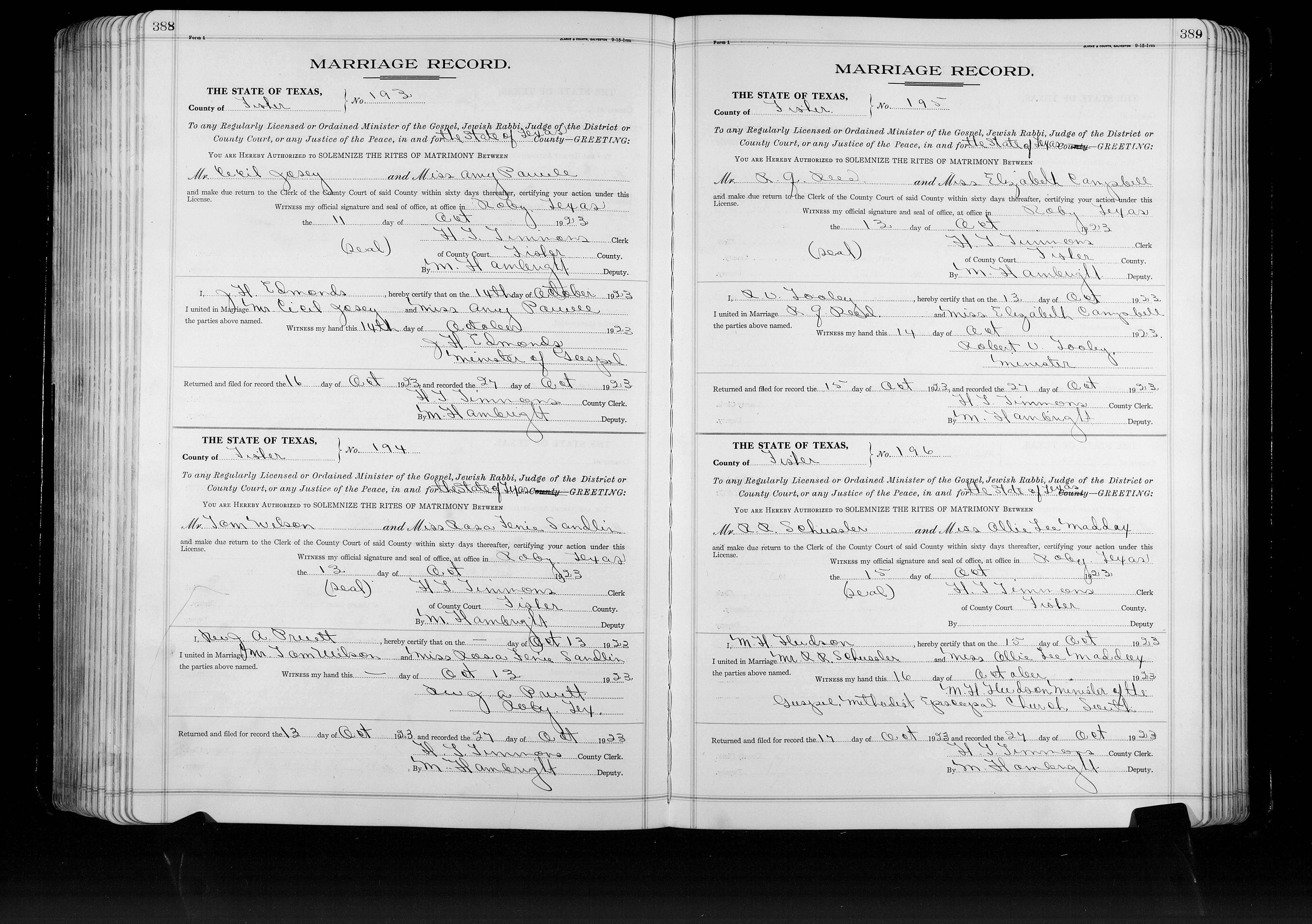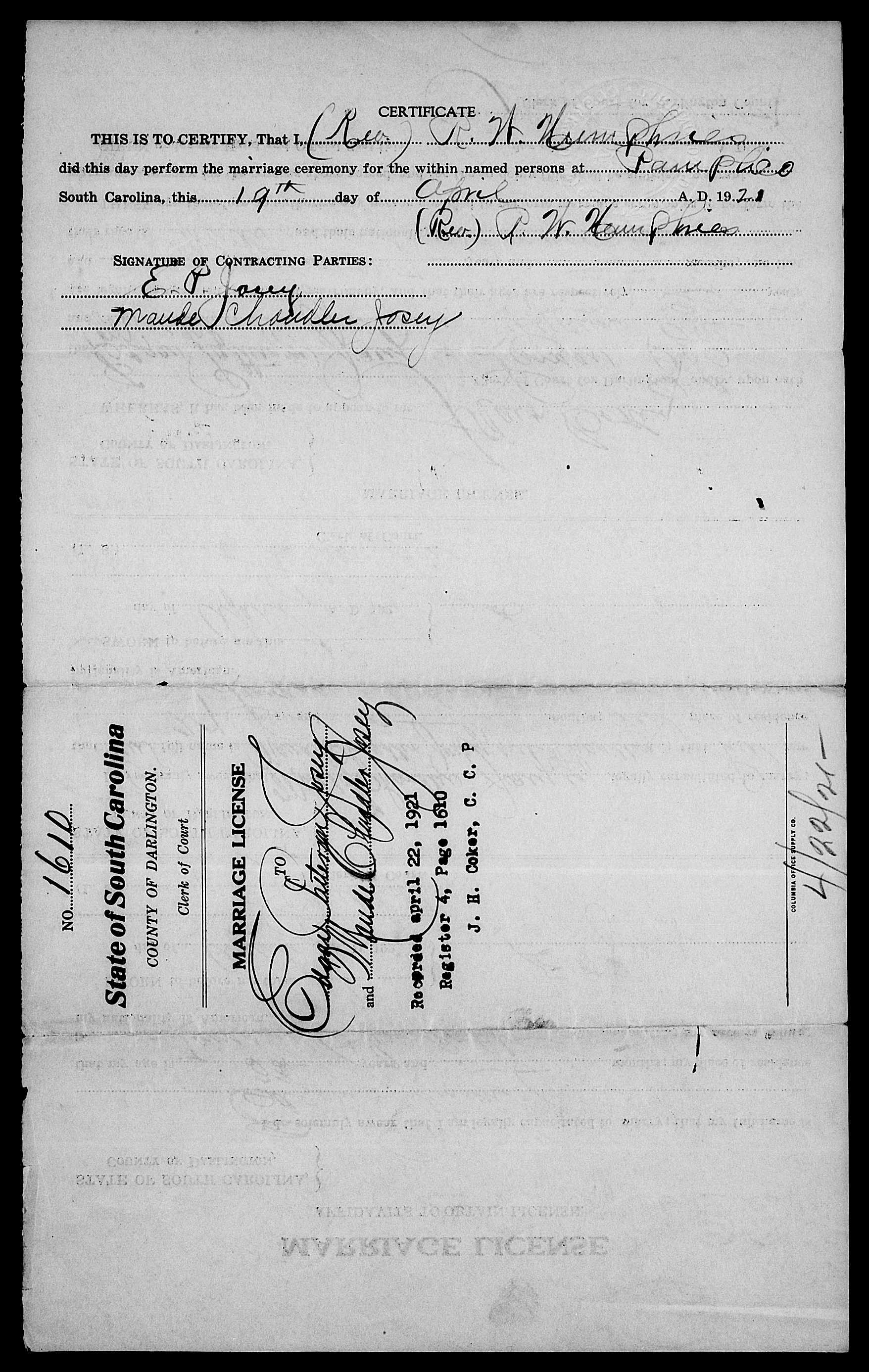 Josey, David Simon & Edna Irene Howard, Marriage Lic 056.JPG