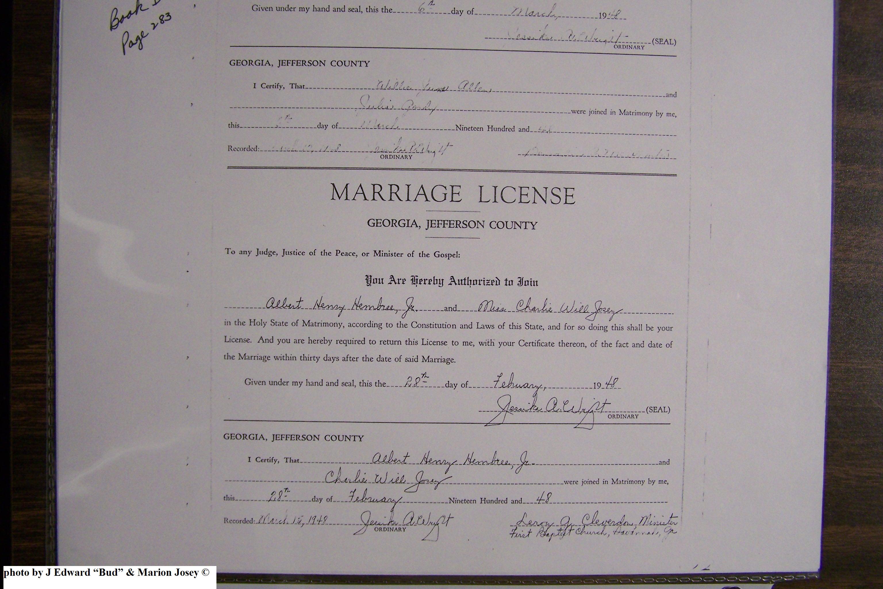 Josey, Charlie Will & Albert Henry Hambree Jr, Marriage Lic 080.JPG