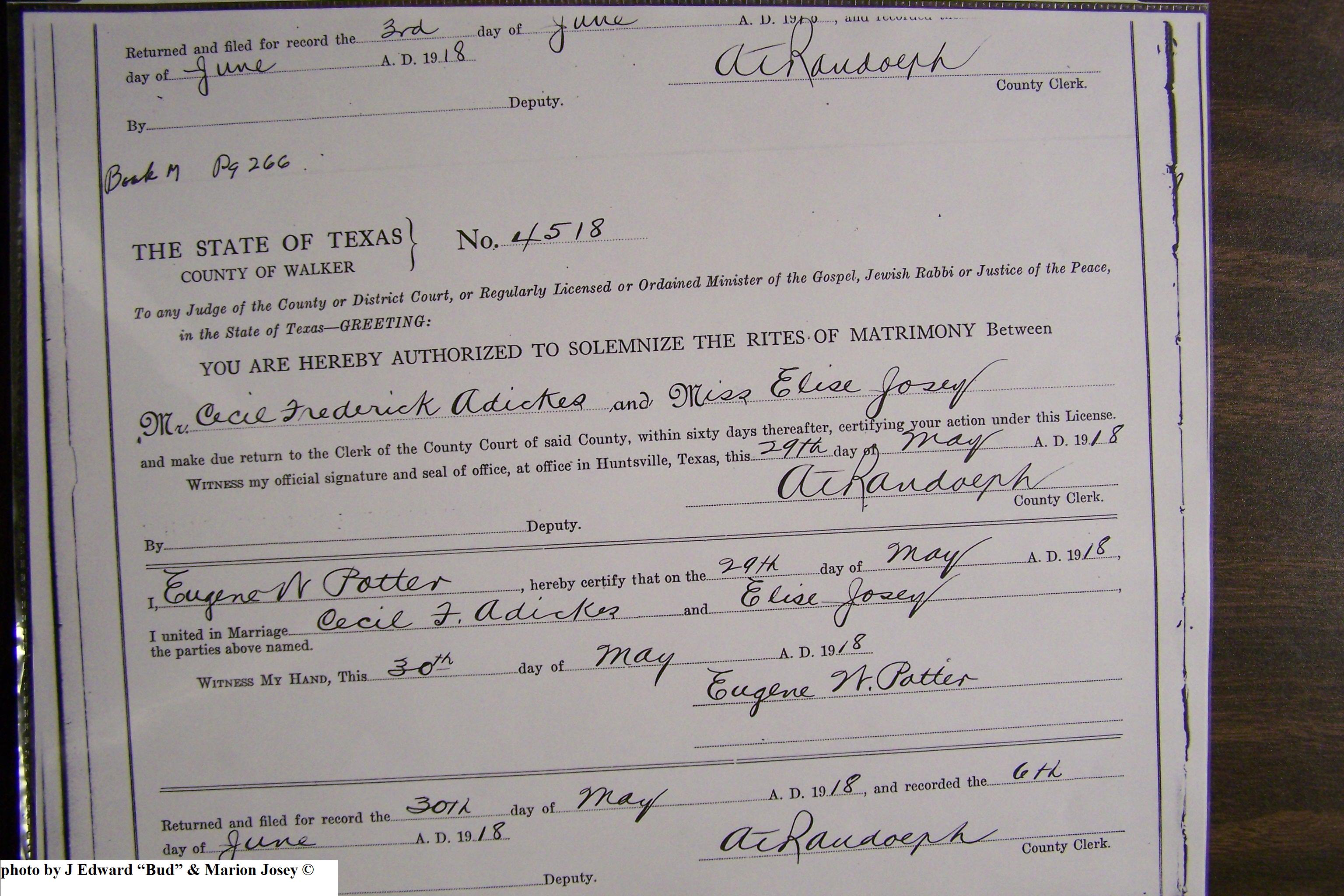 Josey, Elsie & Cecil Frederick Adickes, Marriage Lic 222.JPG