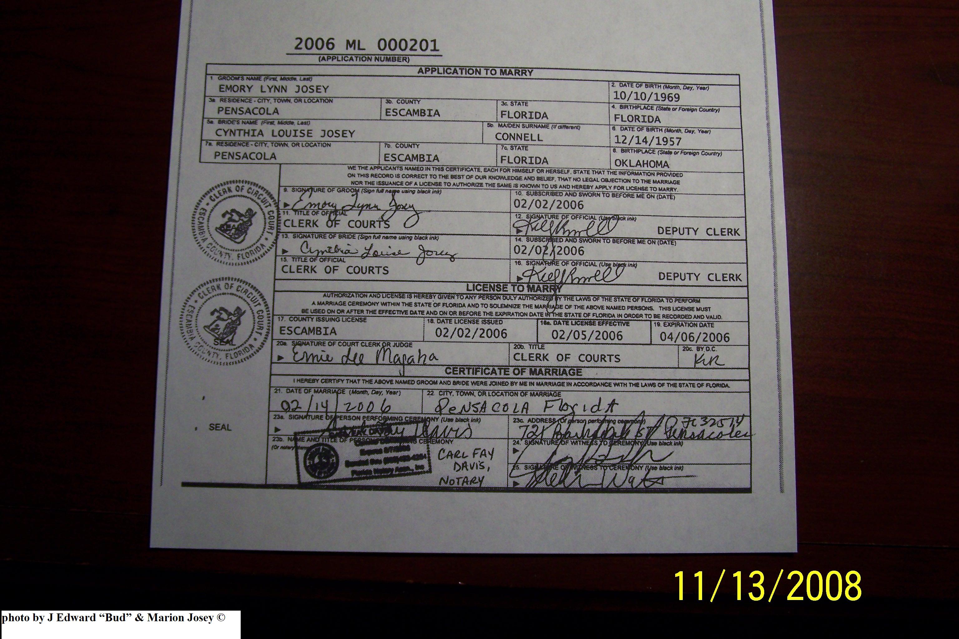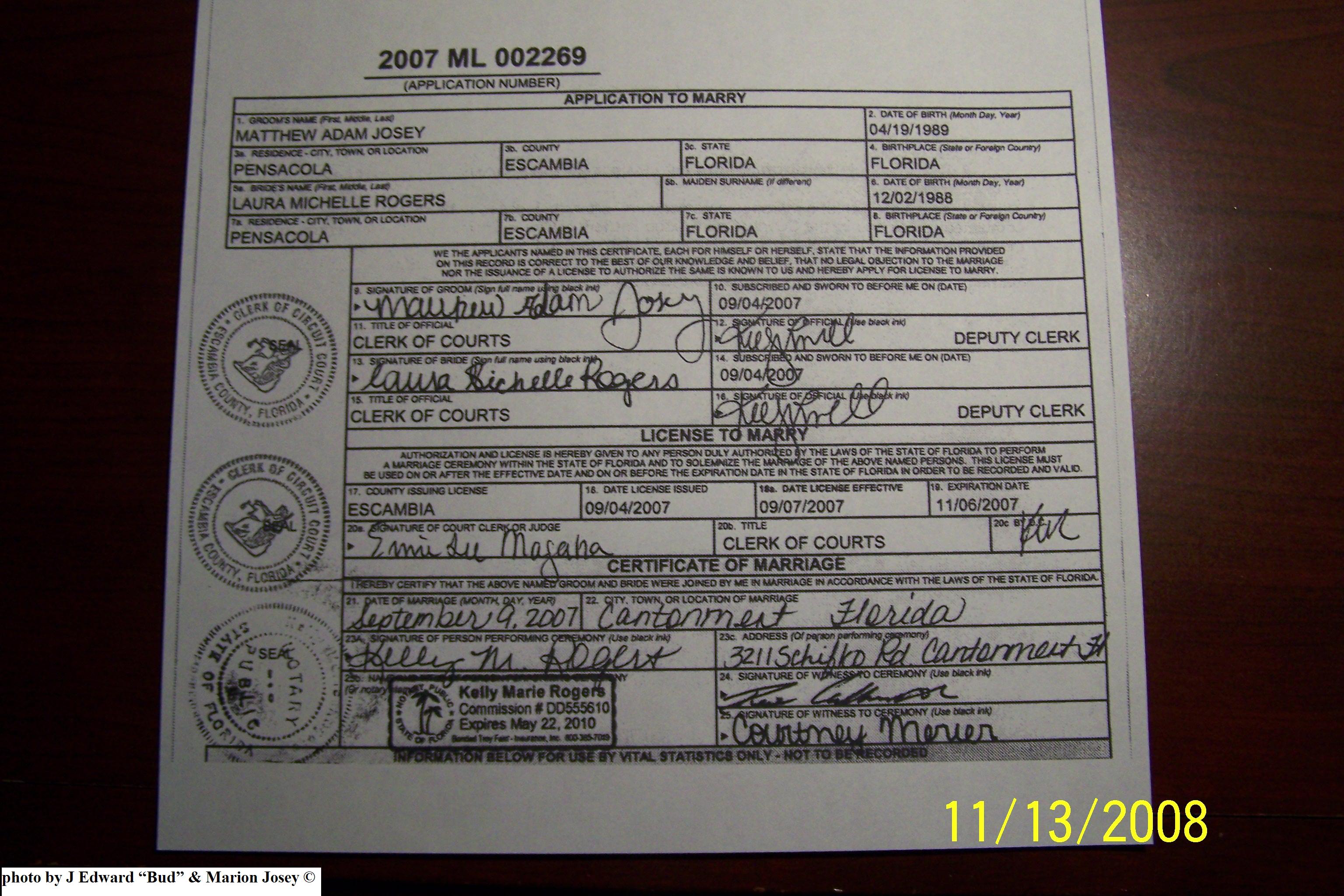 Josey Marriage Lic. Photos