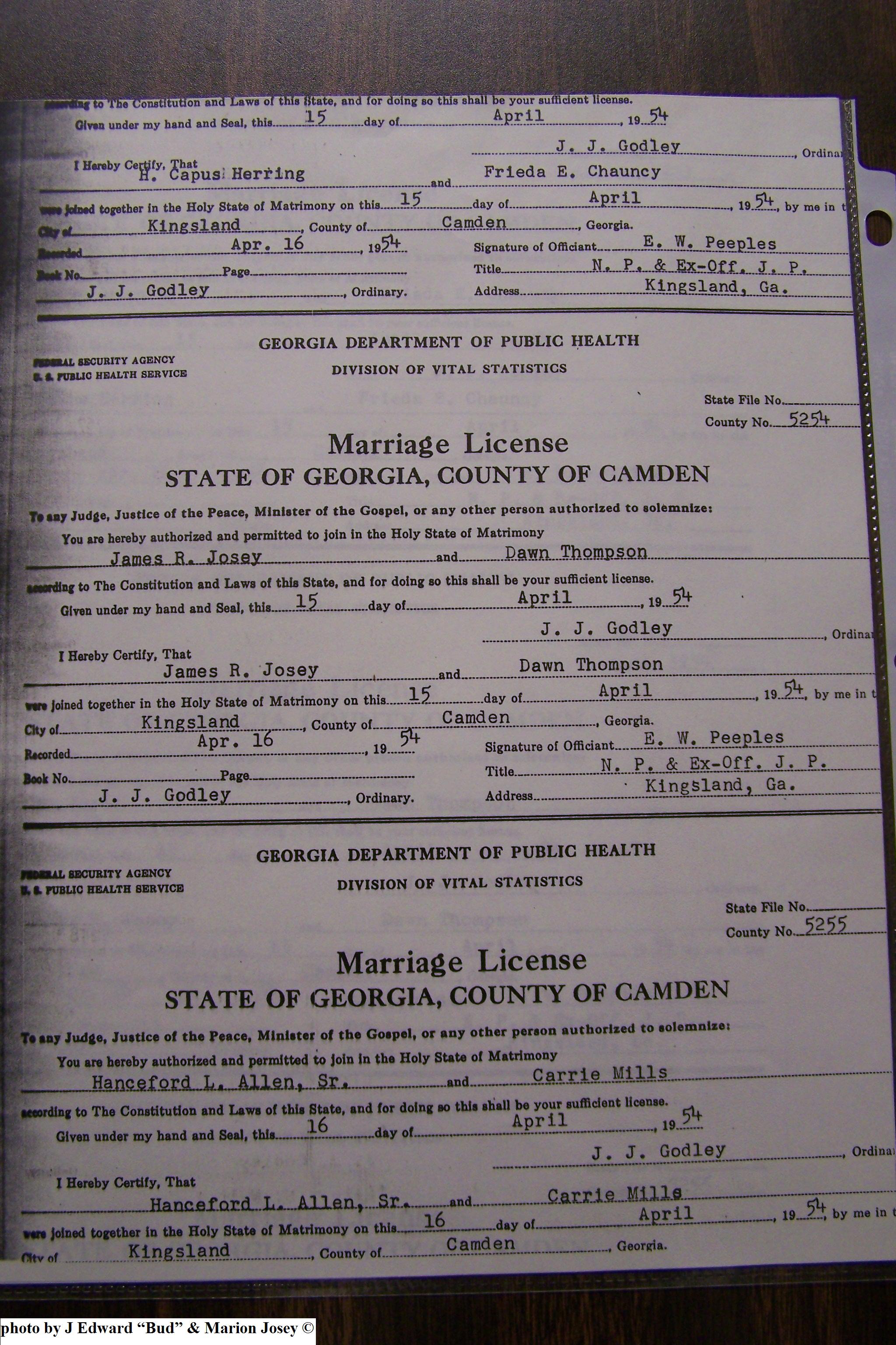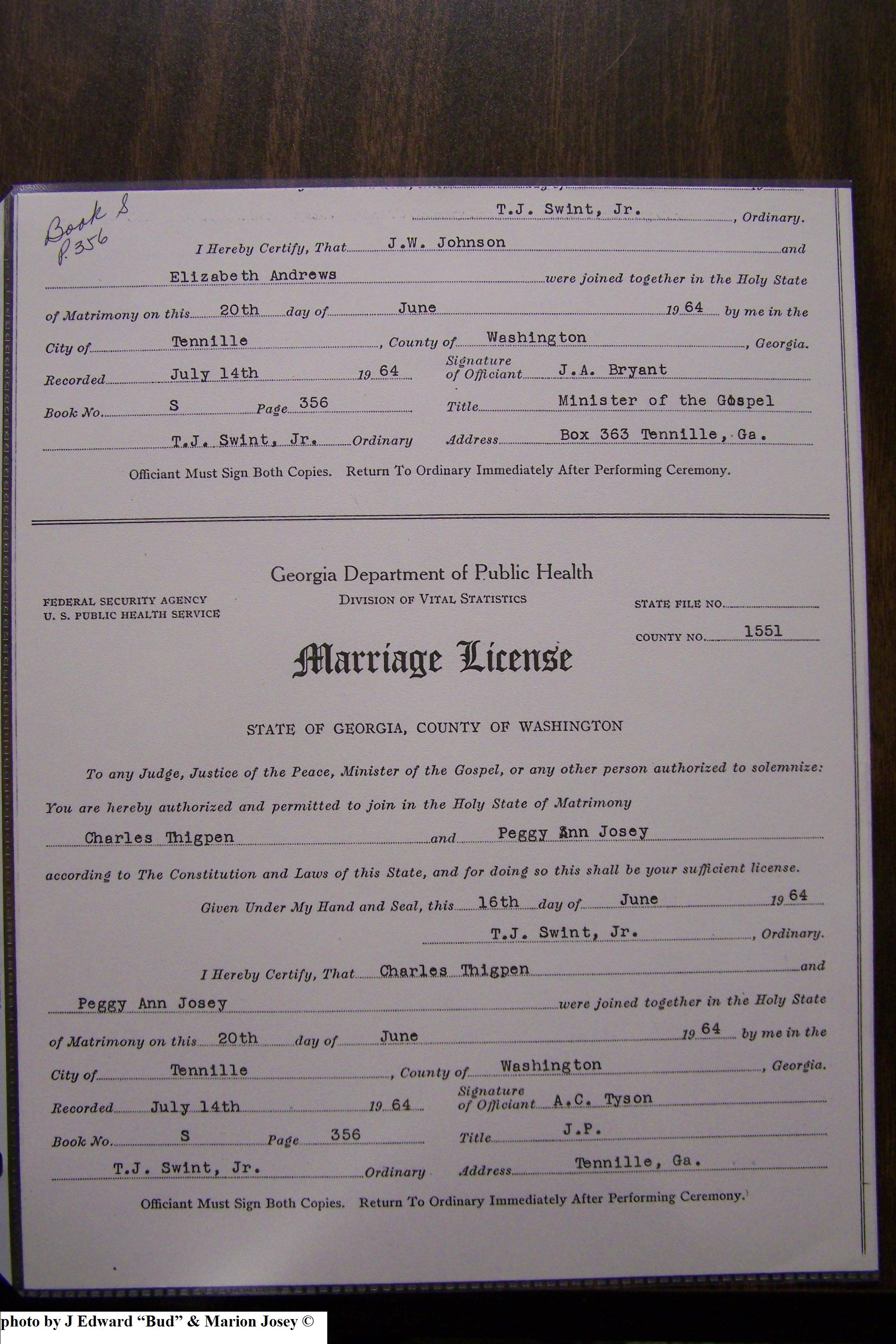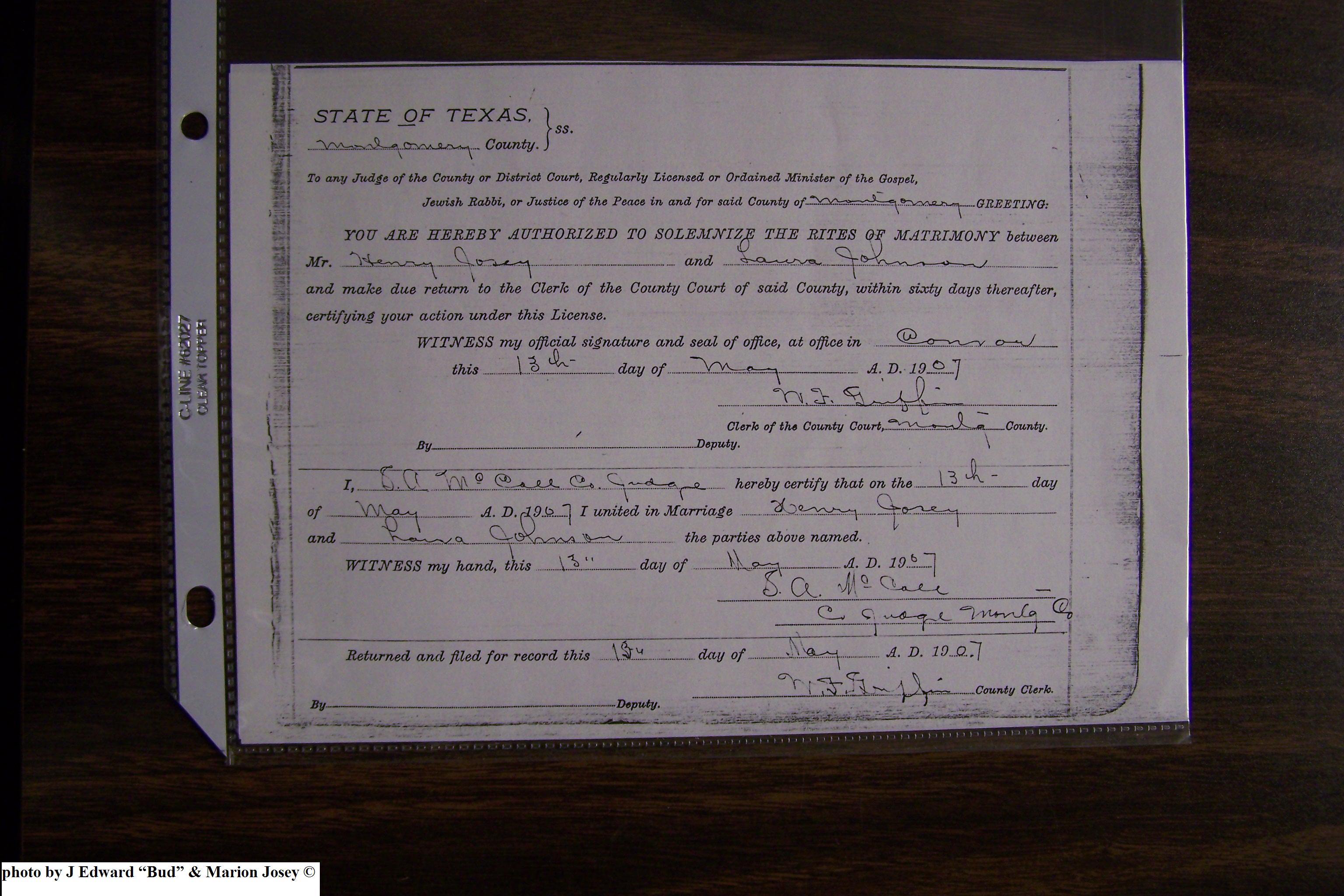 Josey, Charles Allen & Johnnie Speir, Marriage Lic 076.JPG