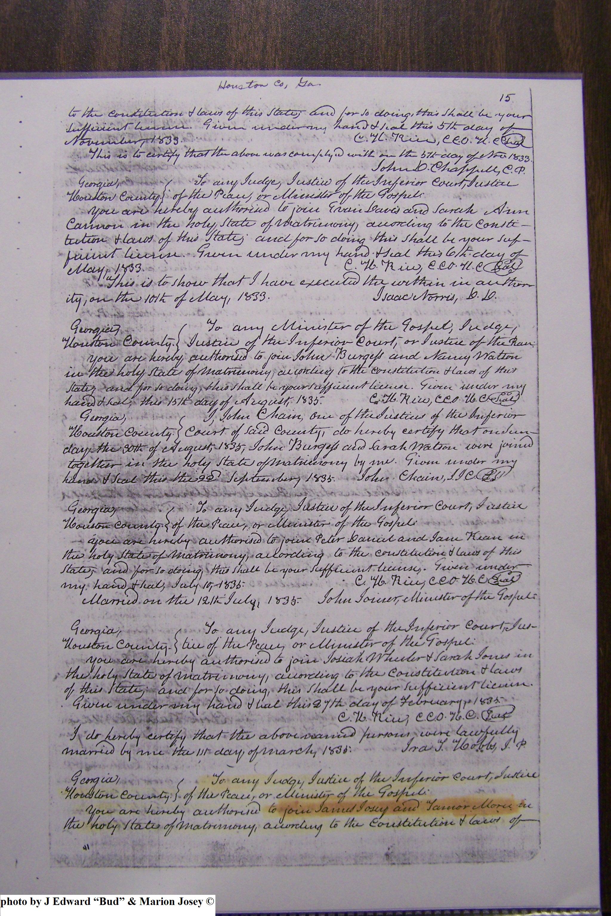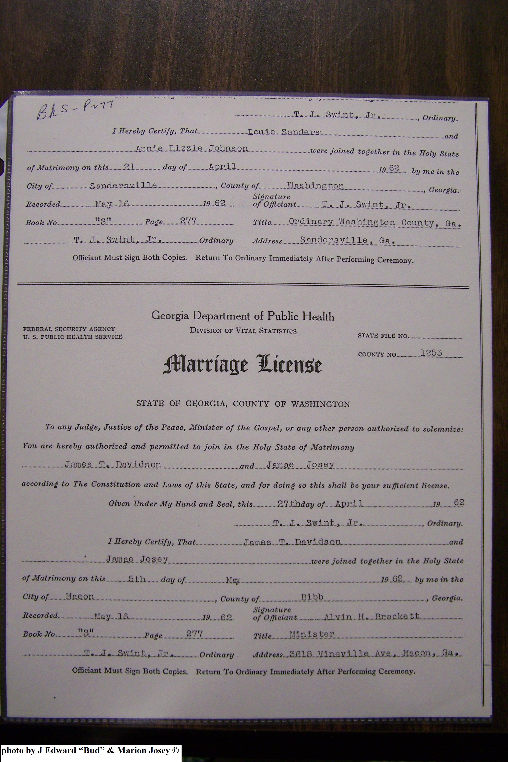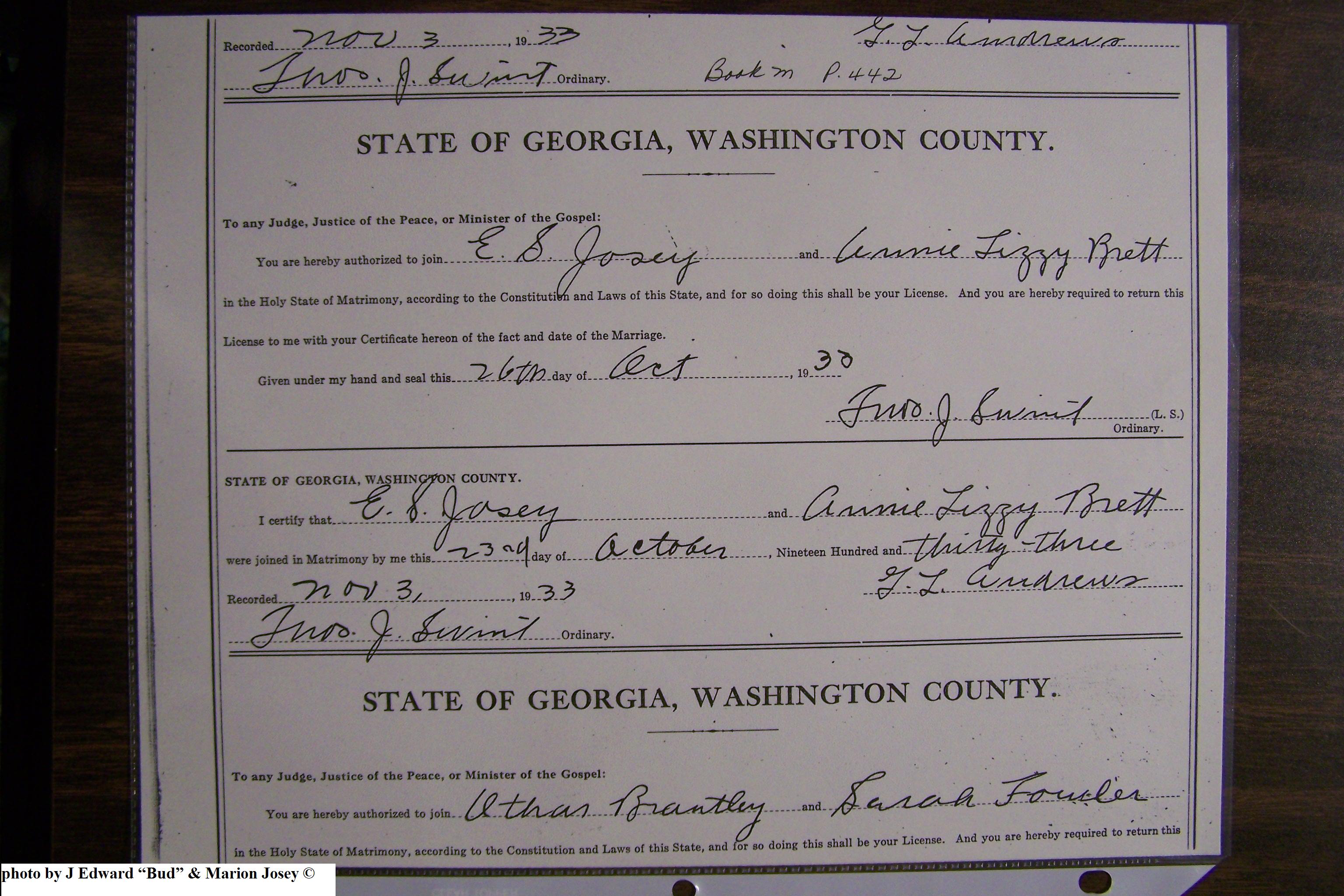 Josey, Charles Allen & Johnnie Speir, Marriage Lic 076.JPG