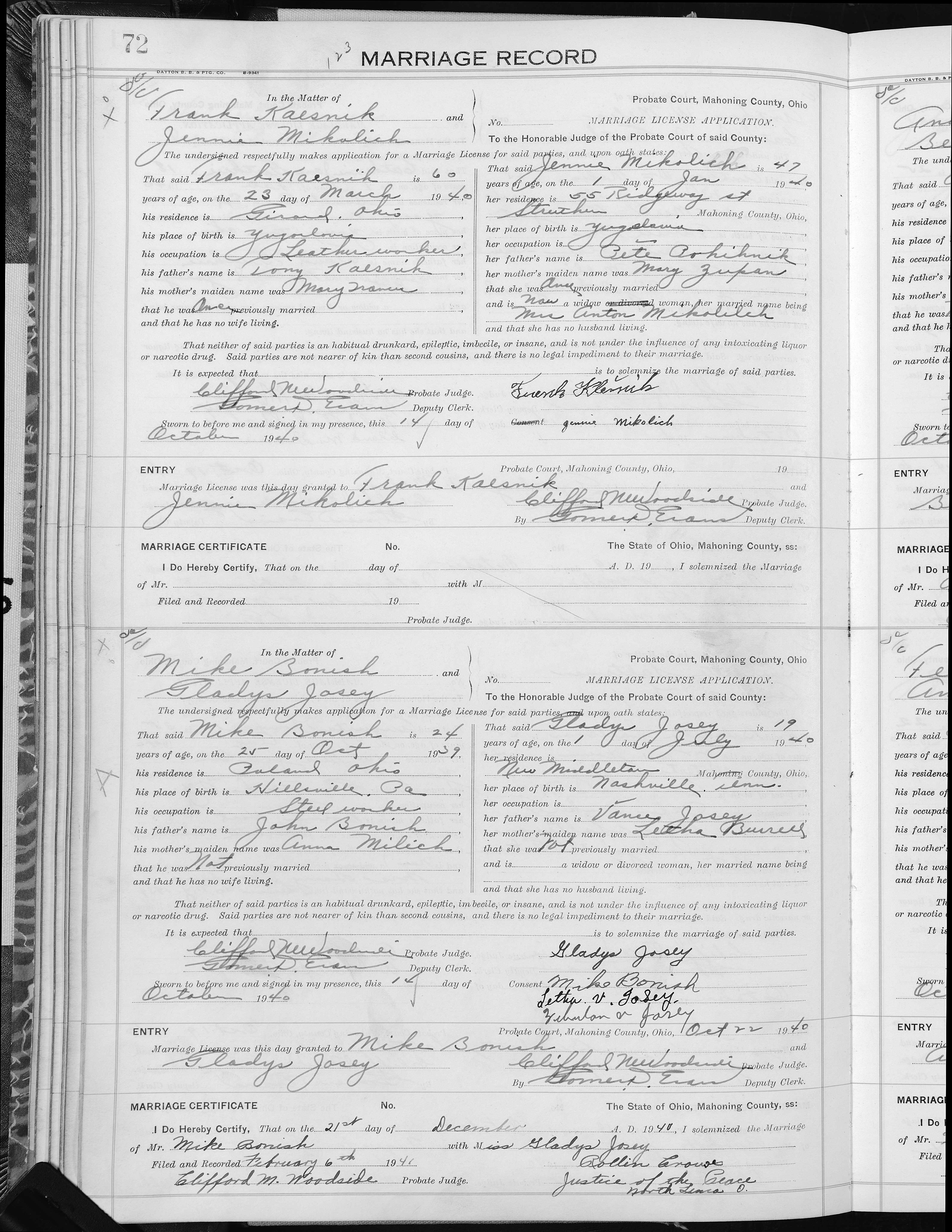 Josey, Cliff Elijah & Alma Lois Howard, Marriage Lic 053.JPG