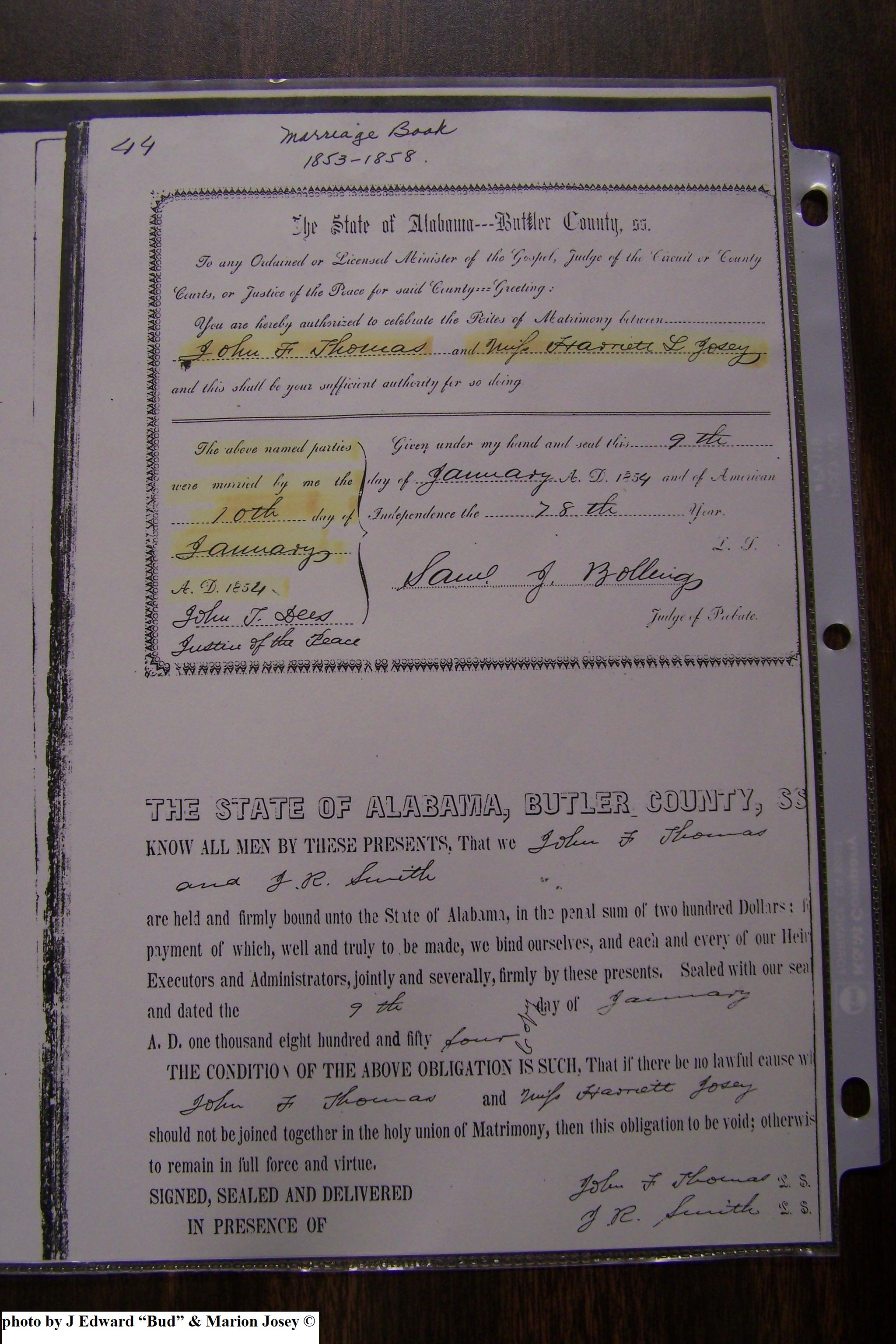 Josey, Thomas Jefferson & Emily Frances Jernigan, Marriage Lic 015.JPG