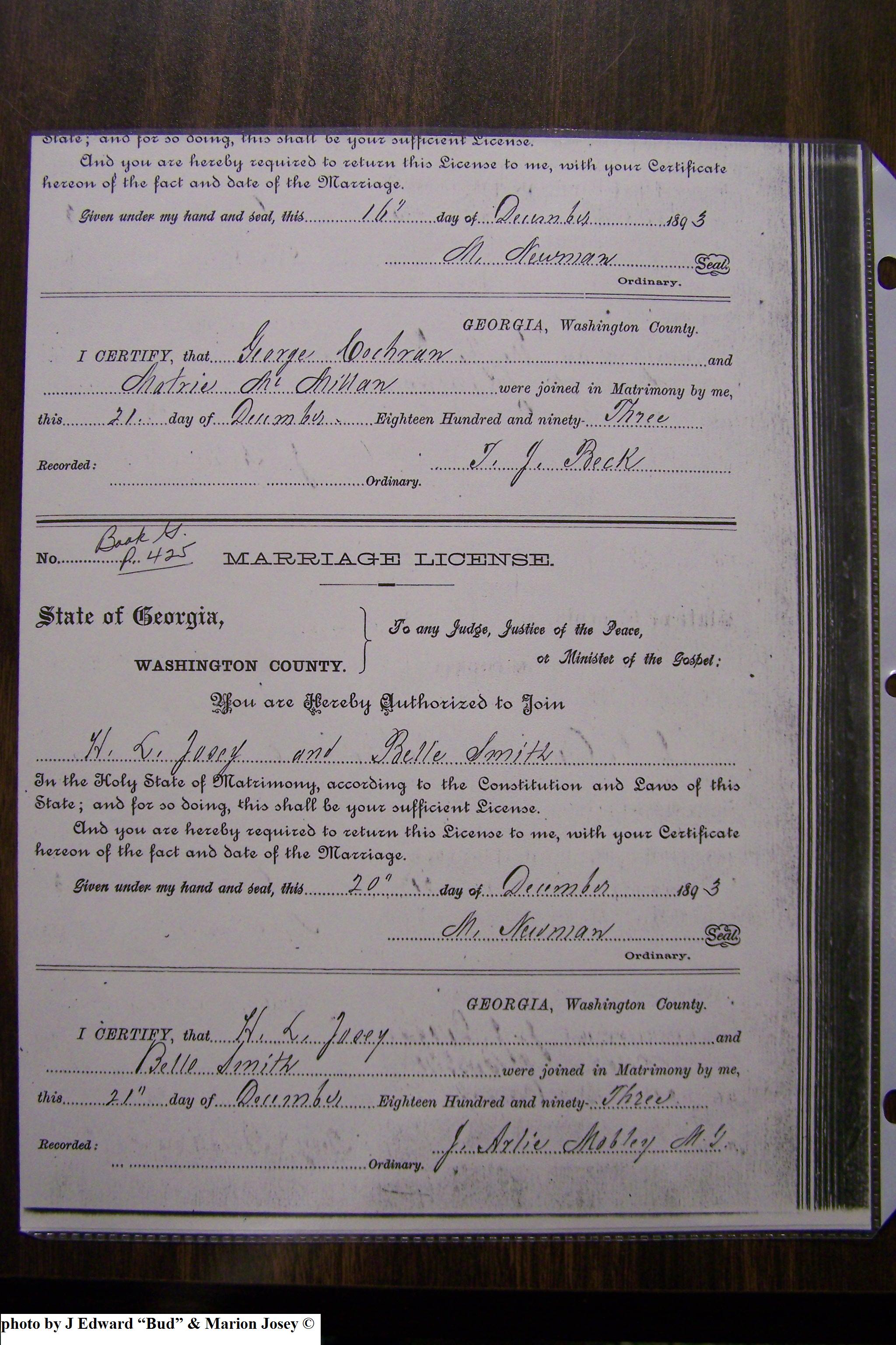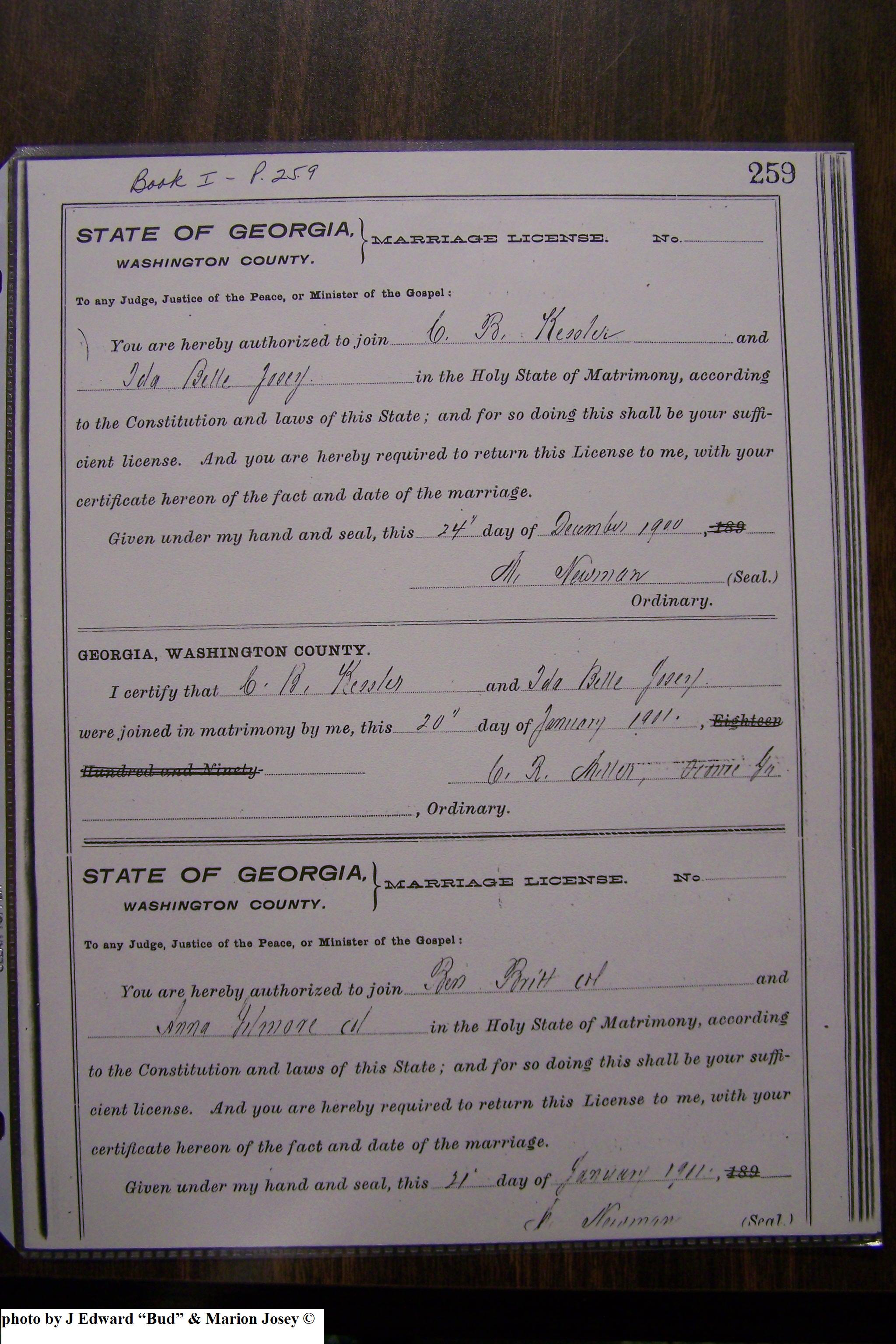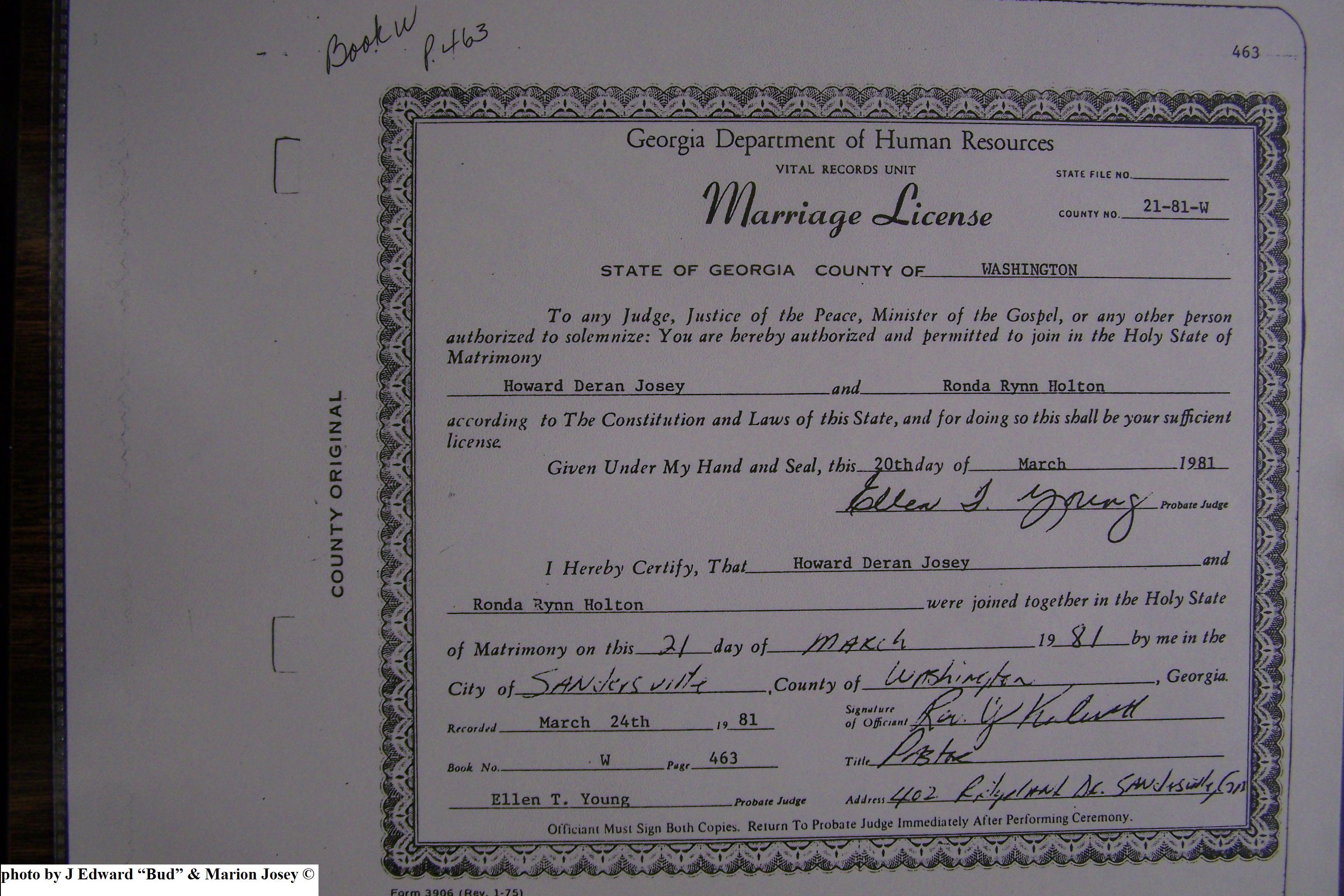 Josey, Amelia & Mark Howard, Marriage Lic 146.JPG