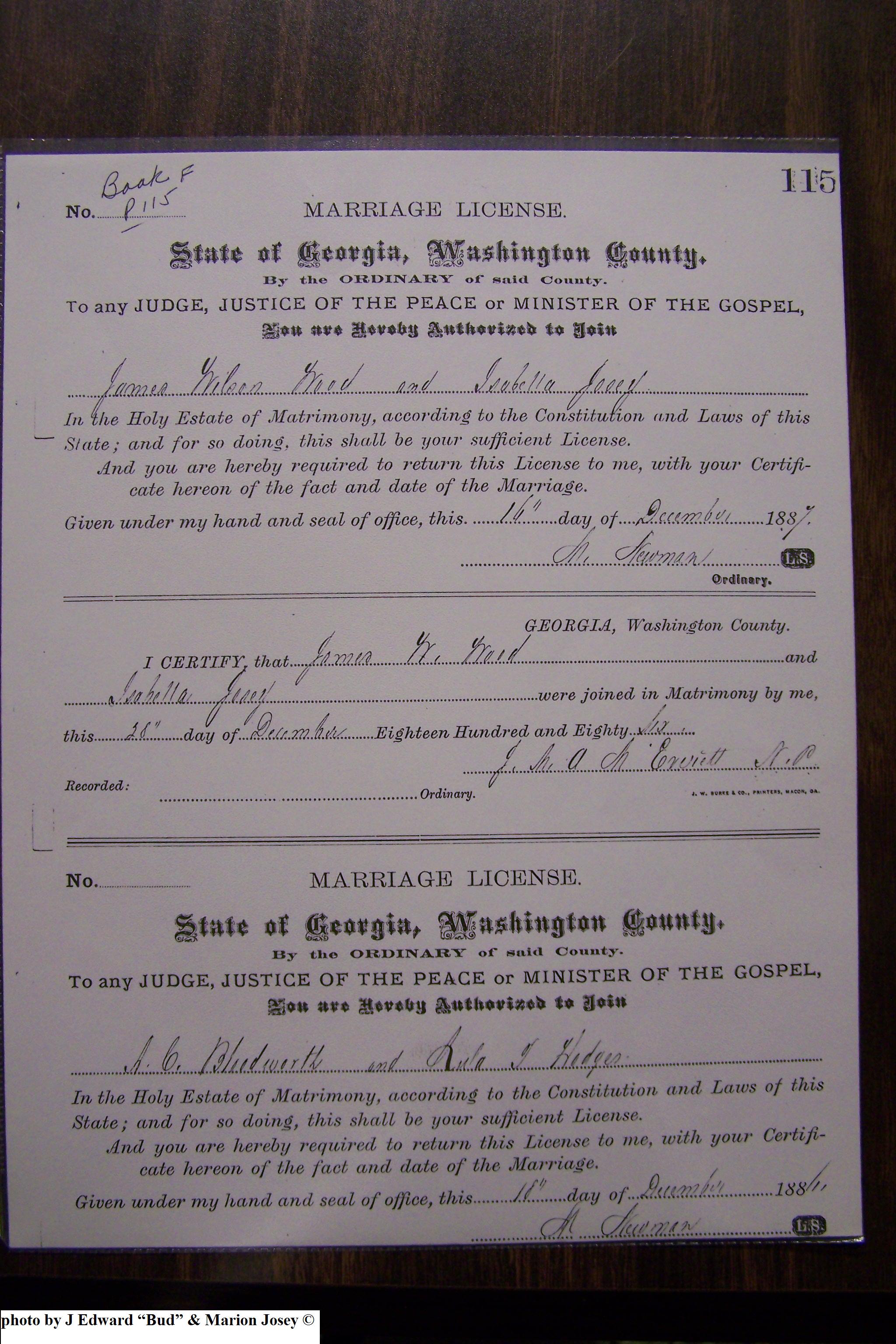 Josey Marriage Lic Washington Co, GA, pg 2, 117.JPG