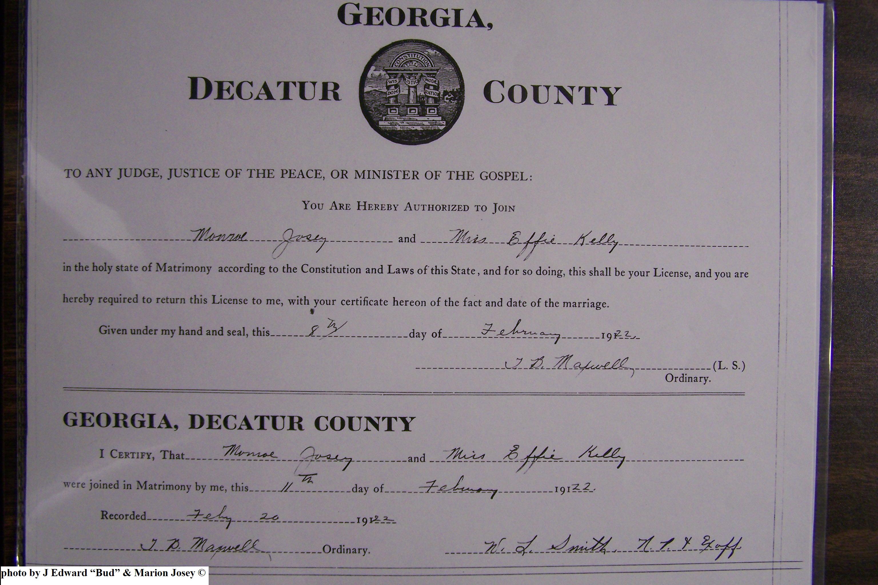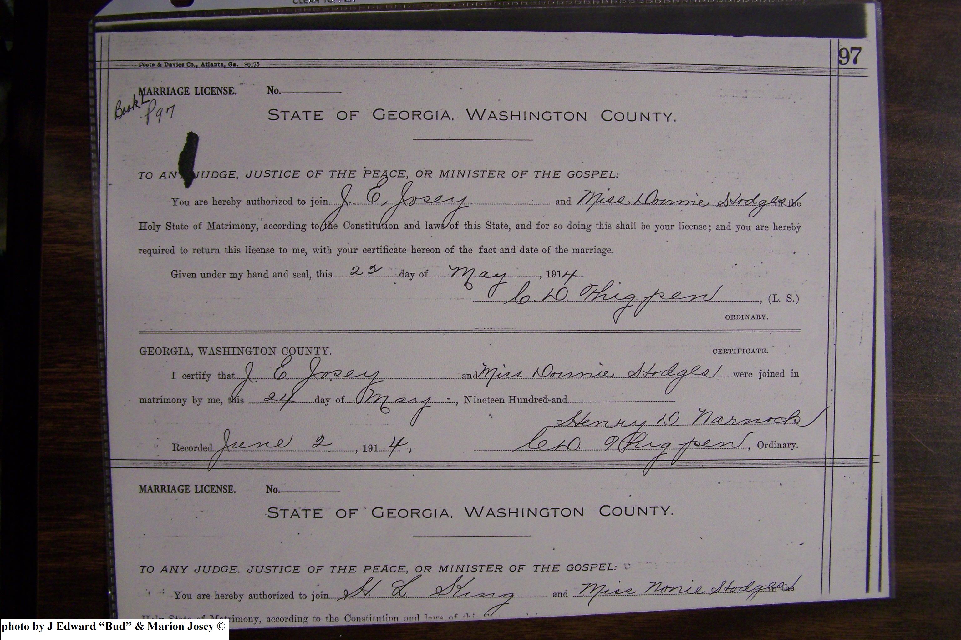 Josey, Robert Elijah & Ethel Ellen Nix, Marriage Lic 051.JPG