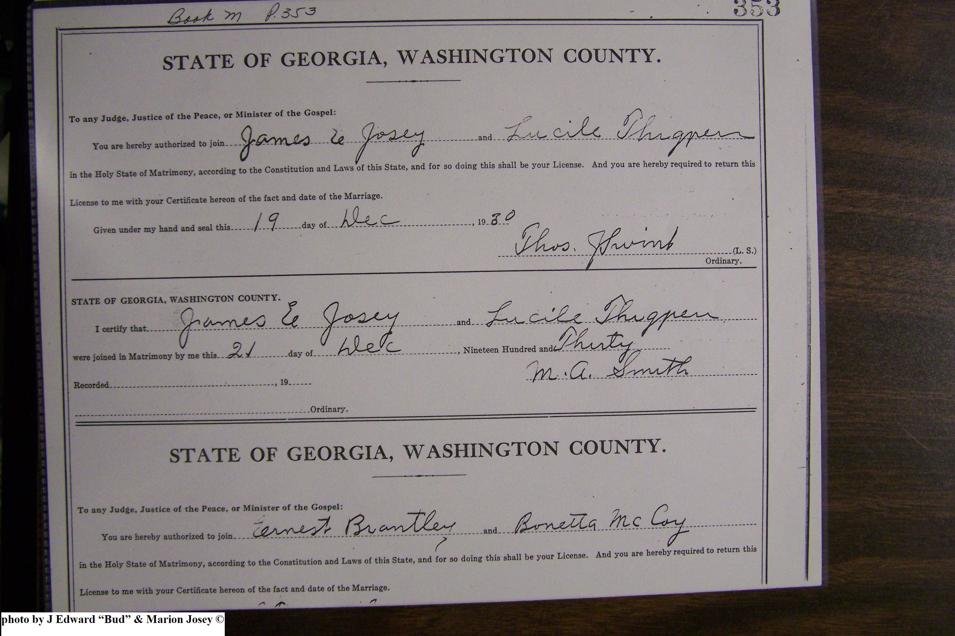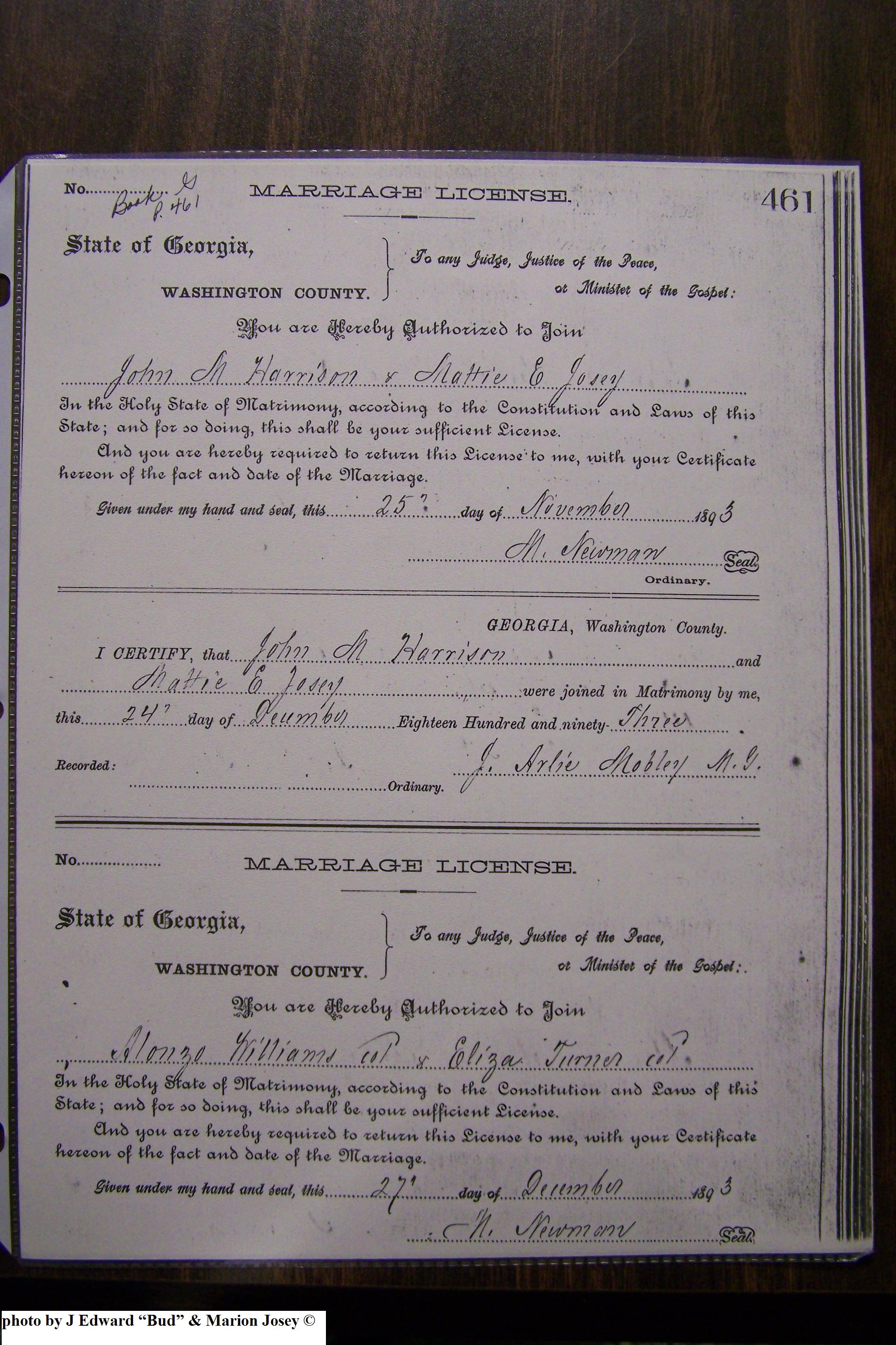Josey, Thomas & Etta Williams, Marriage Lic 089.JPG