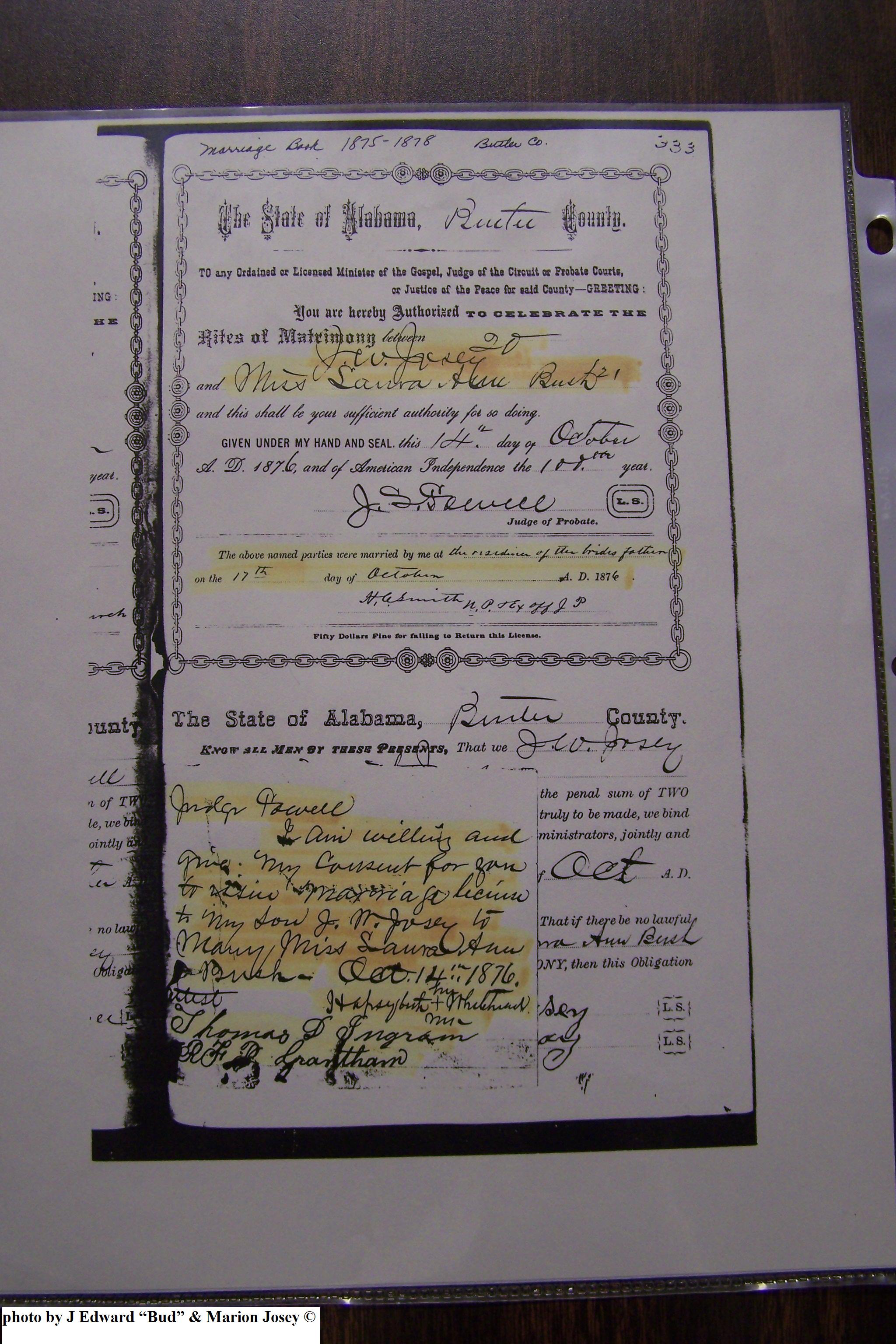 Josey, Susan Jane & William Ashley Powell, Marriage Lic 127.JPG