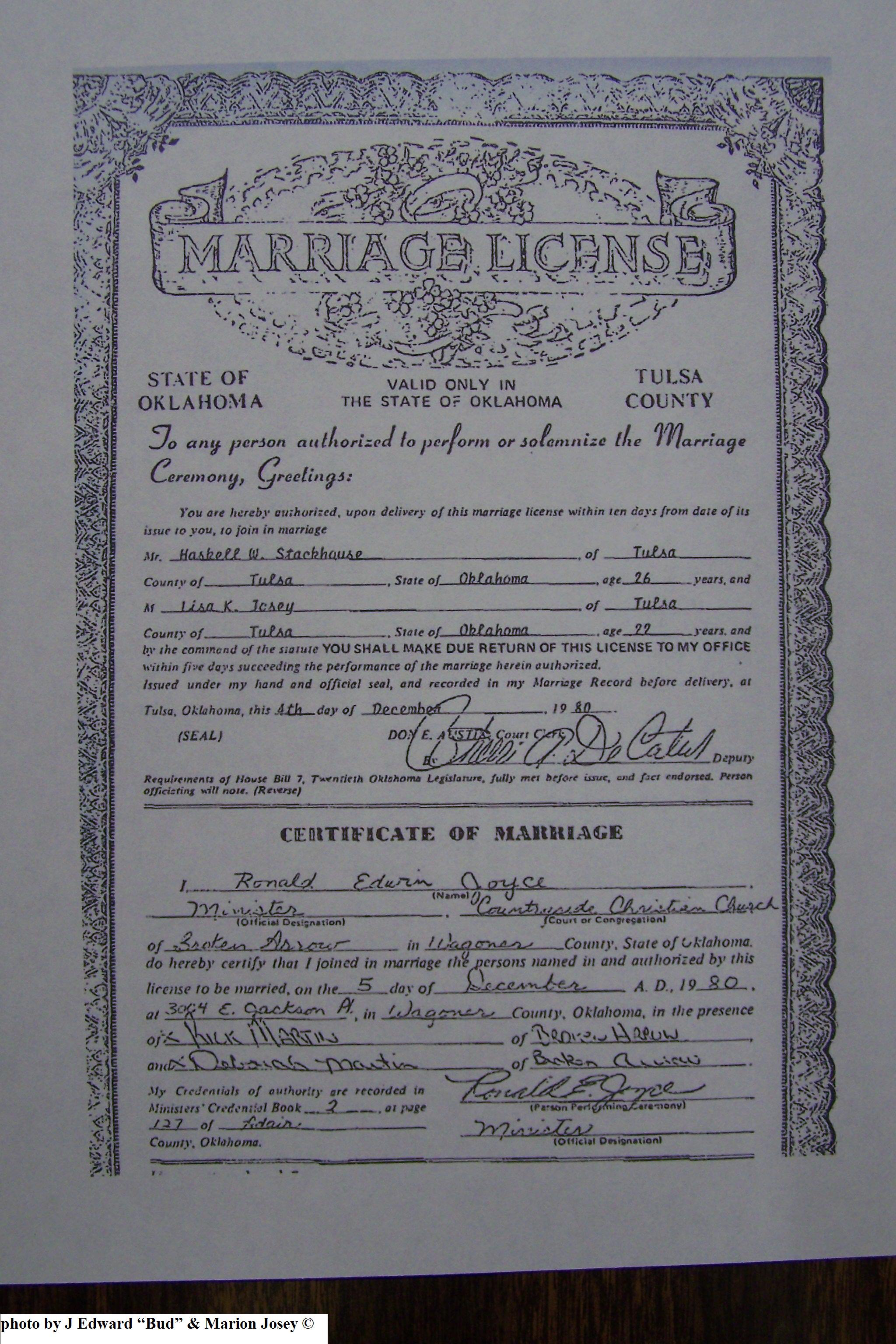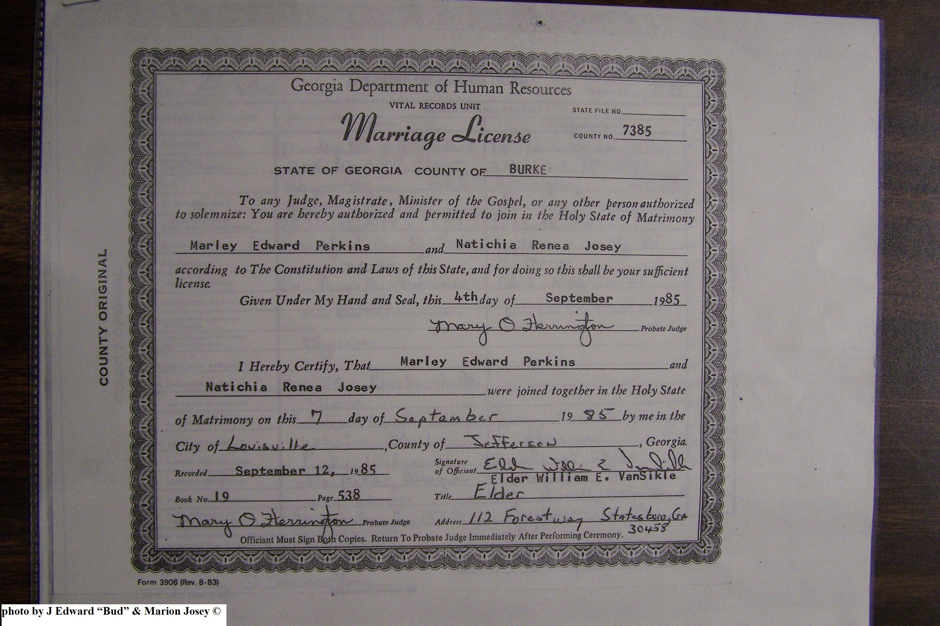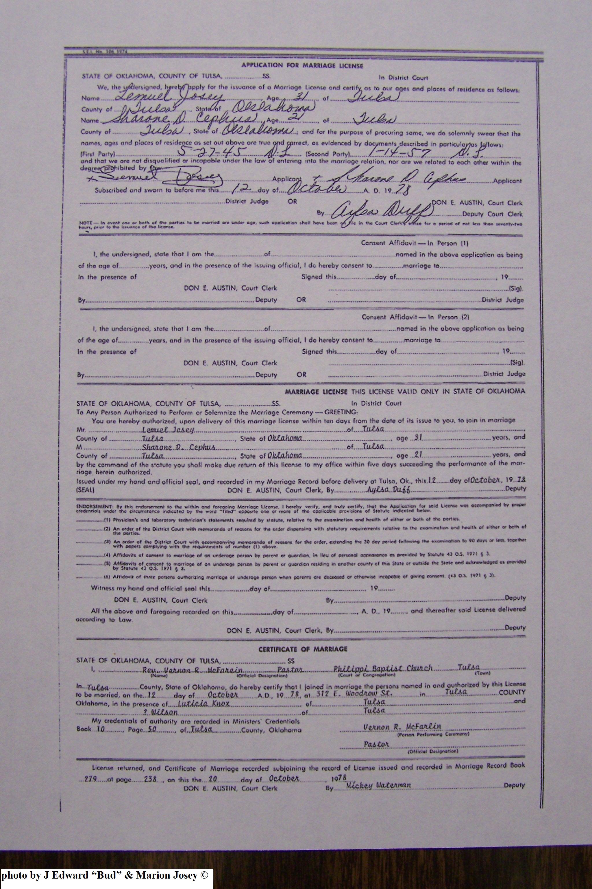 Josey, Stephanie Ann & Jimmy O Wilson Jr, Marriage Lic 010.JPG