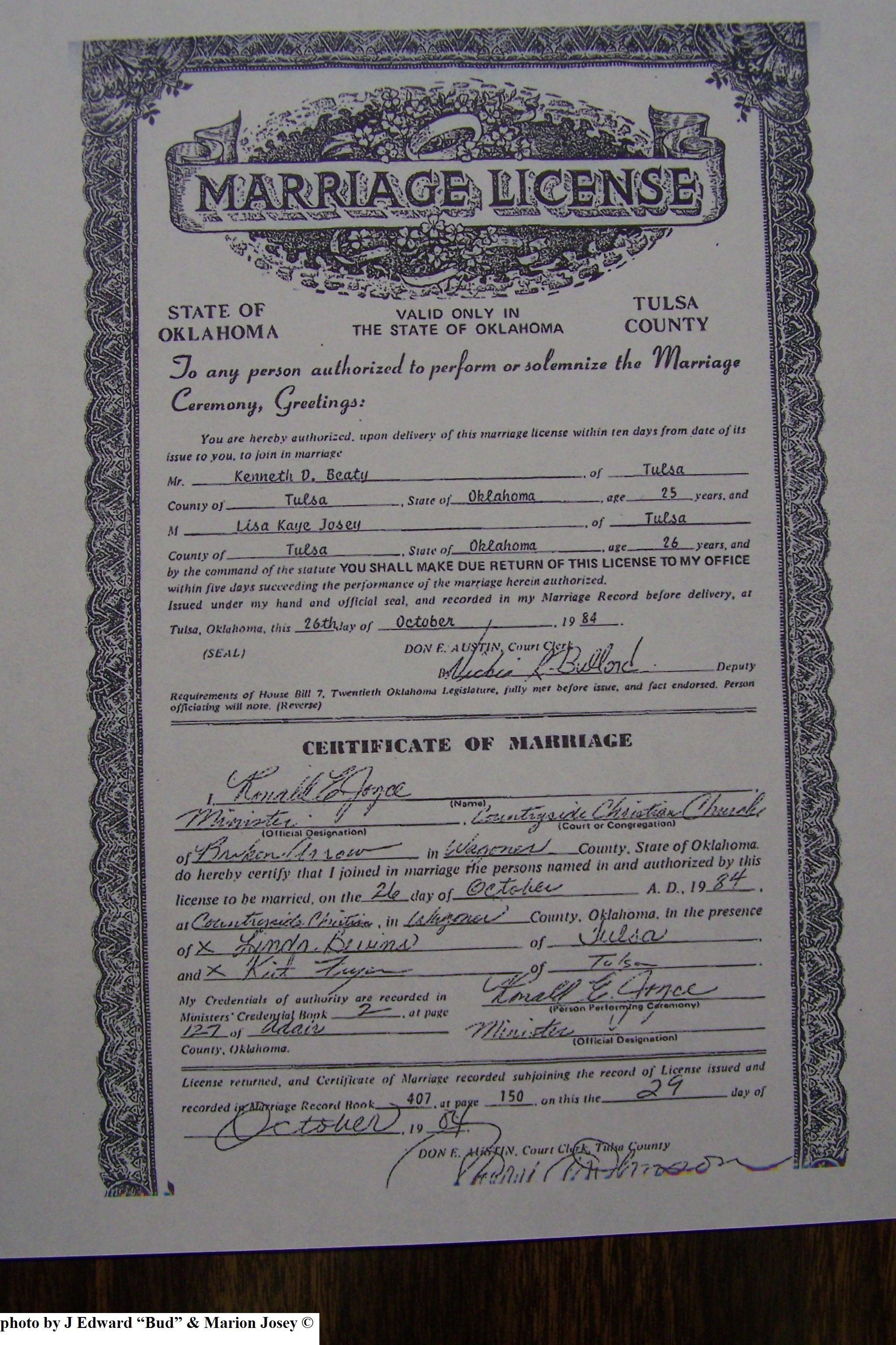Josey, Teresa Gail & Mike Viers, Marriage Lic 029.JPG