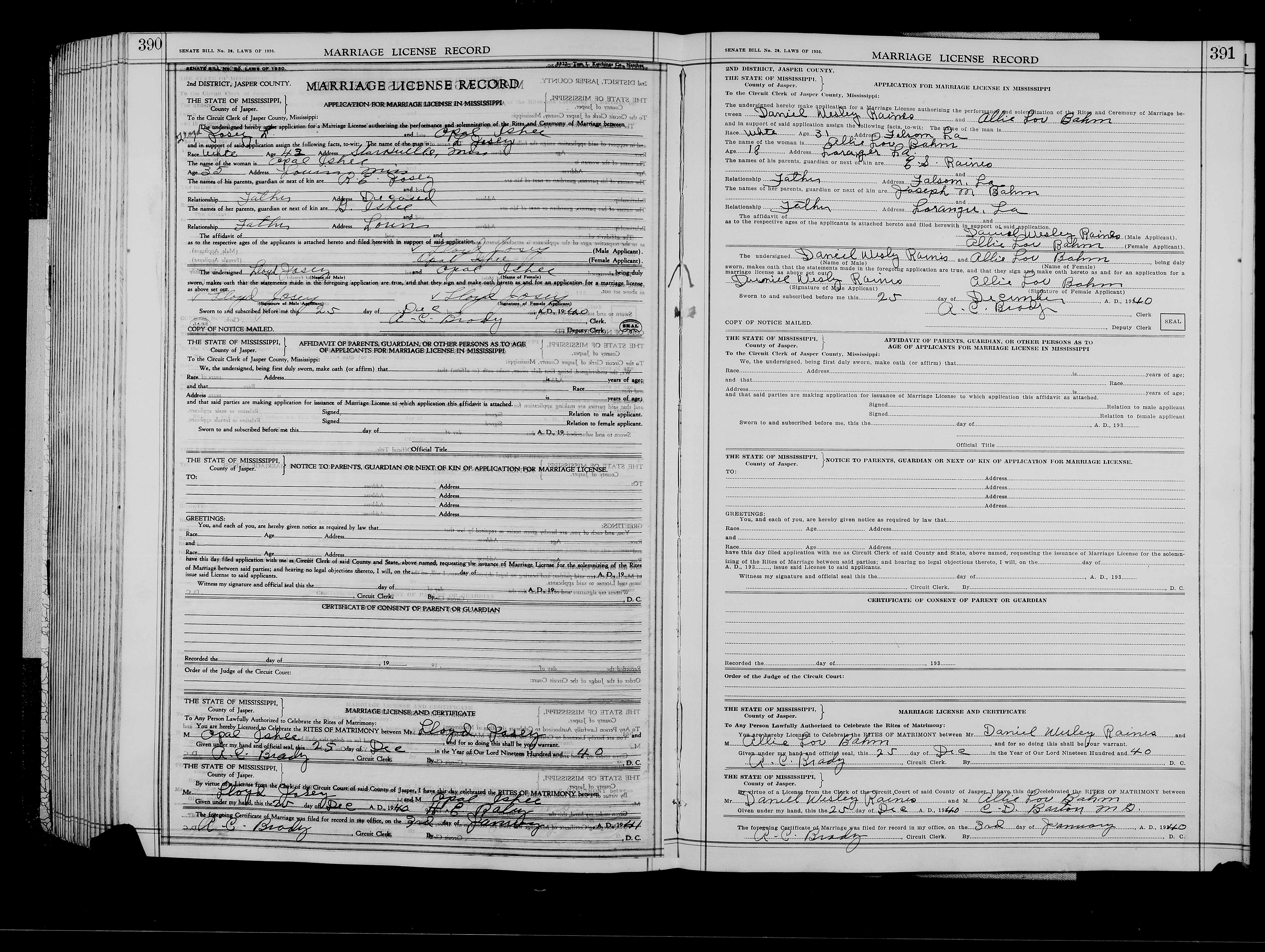 Josey, Charlie Ralph & Betty Jane Brown, Marriage Lic 183.JPG