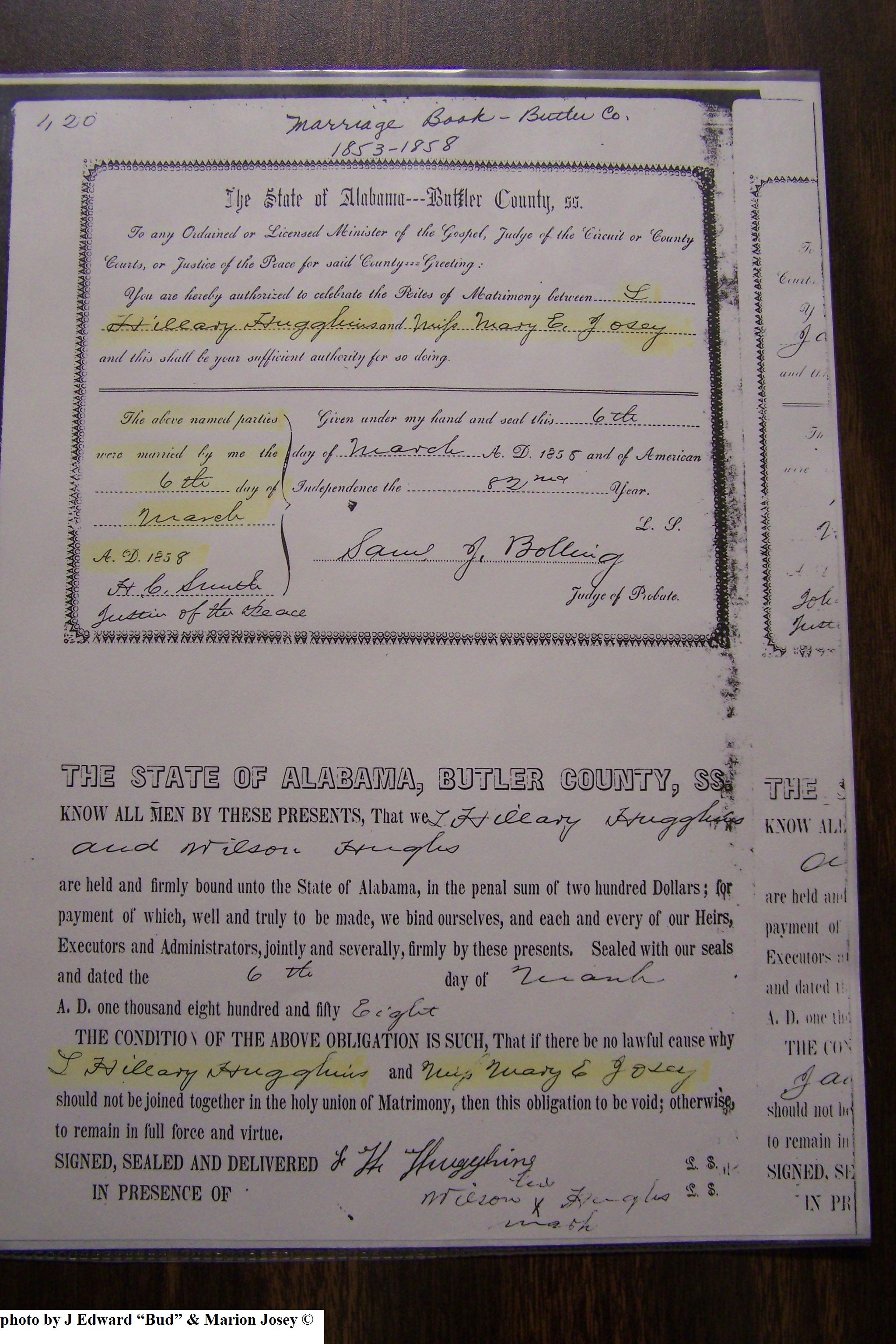 Josey, Elizabeth S & Richard Singleton Hughs, Marriage Lic 007.JPG