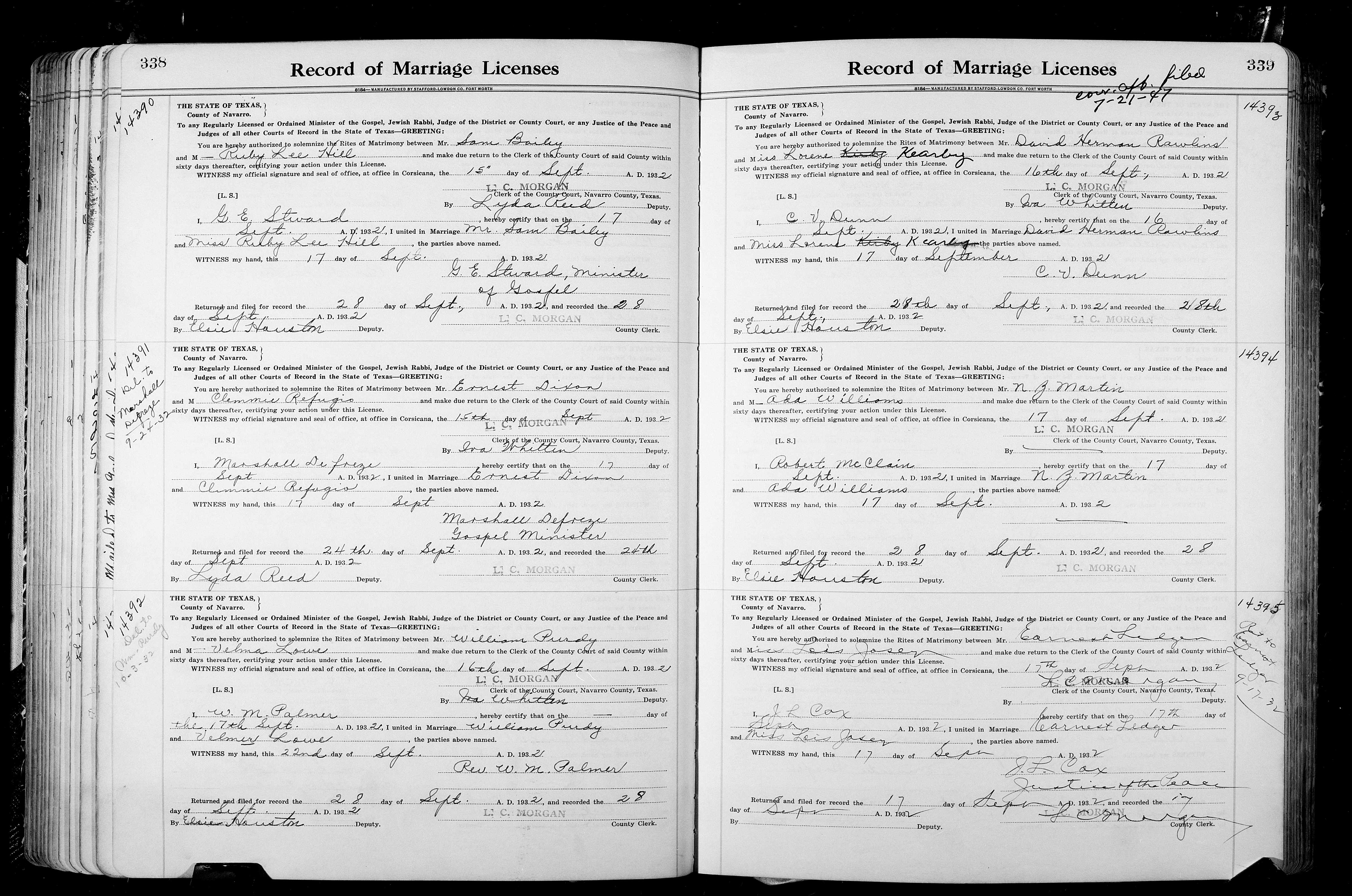 Josey, Ernest Lee & Dorothy Elizabeth Holton, Marriage Lic 179.JPG