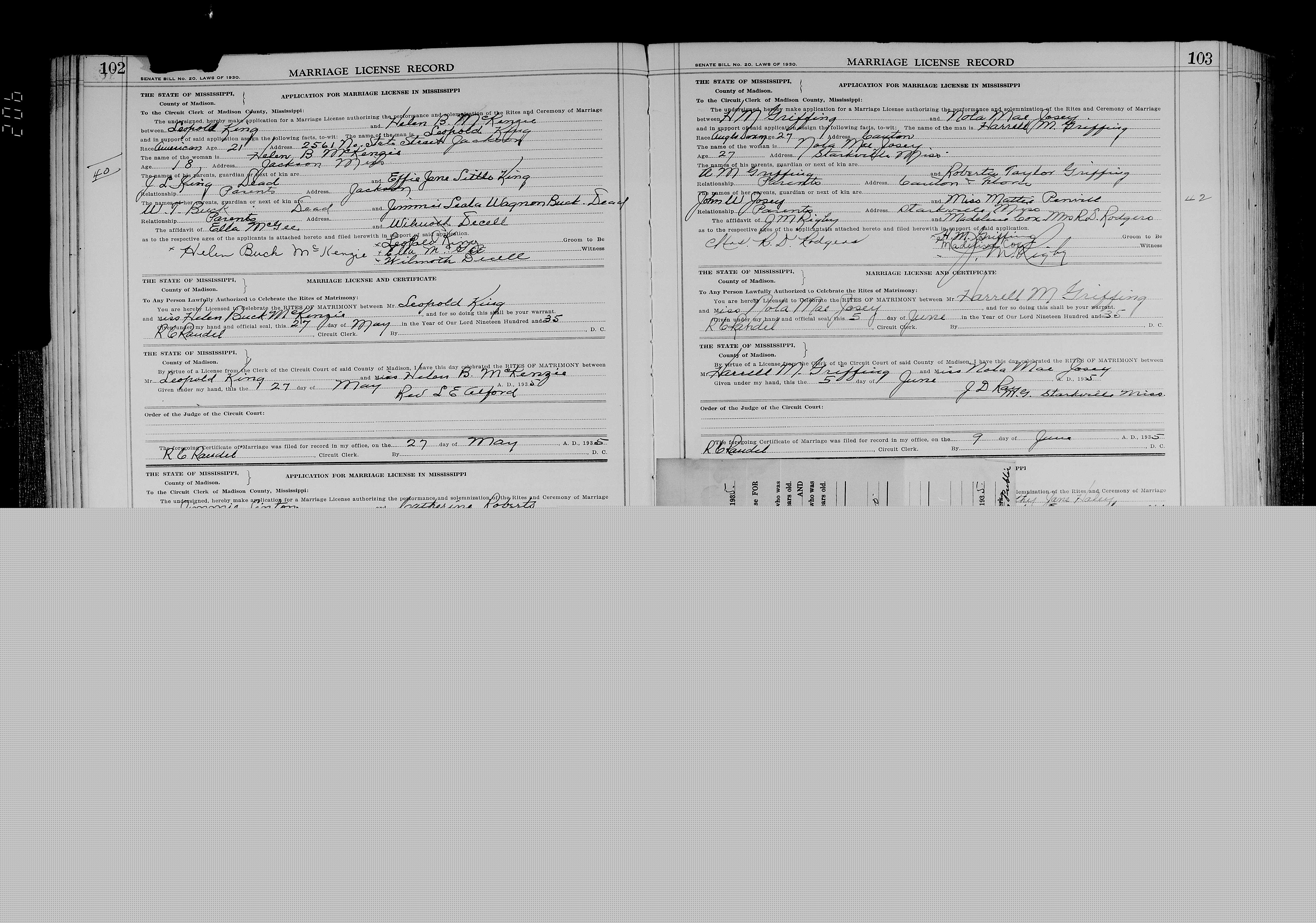 Josey, Dorothy Camille & George Robert Adams, Marriage Lic 037.JPG
