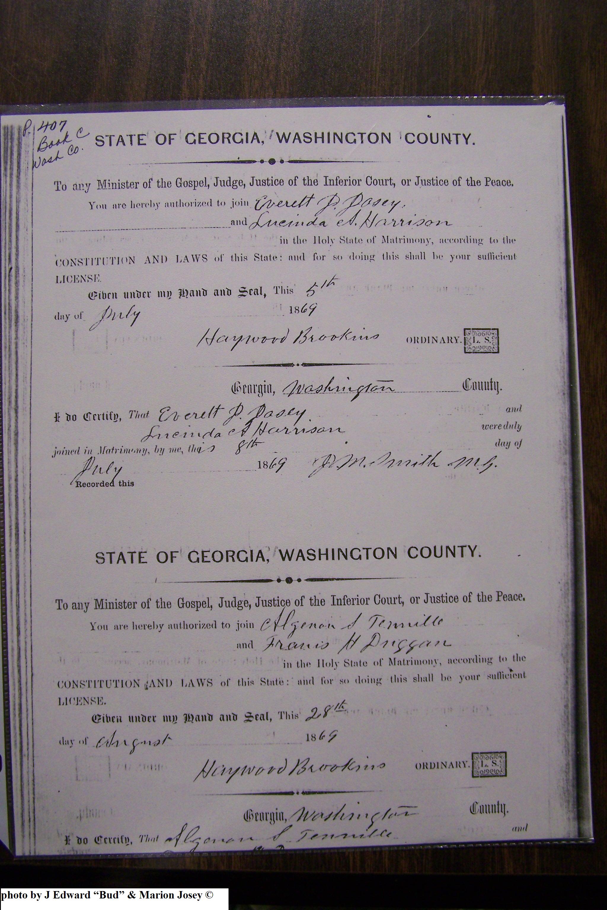 Josey Marriage Lic Washington Co, GA, pg 2, 117.JPG